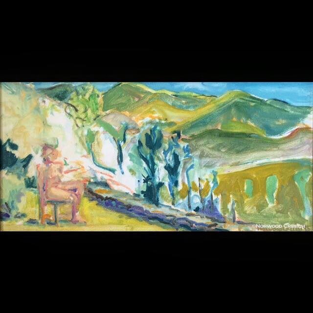 Tesuque Nude, Tesuque, New Mexico, painted on location, oil on canvas panel 8" x 16" Norwood Creech 1995
