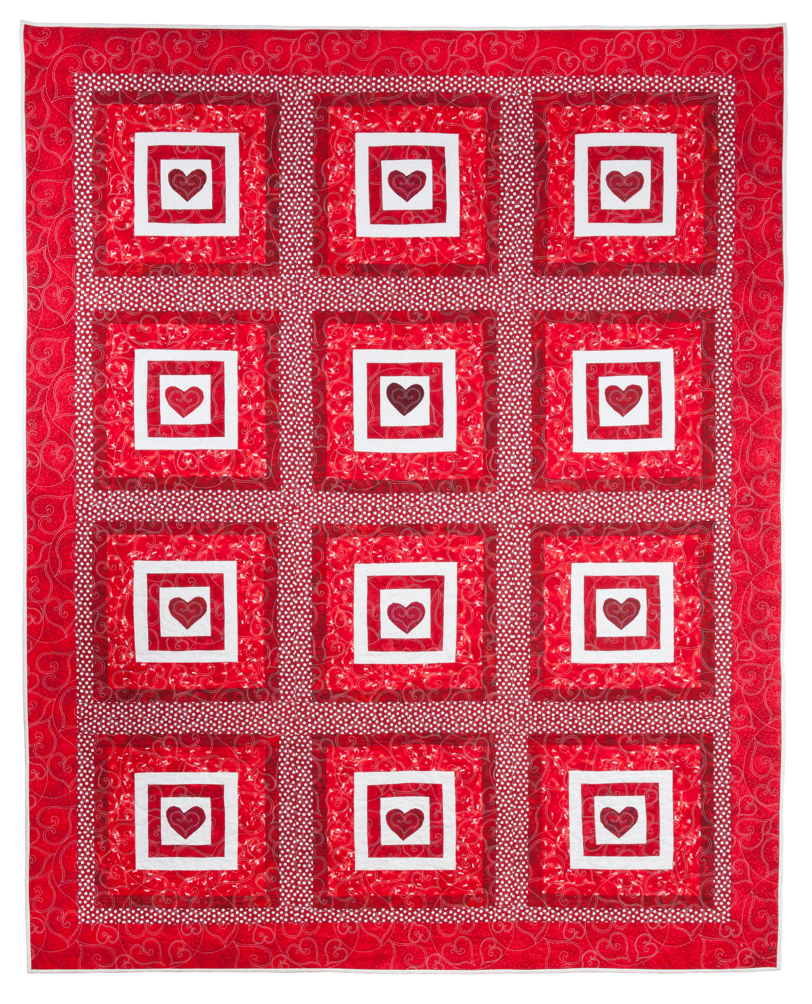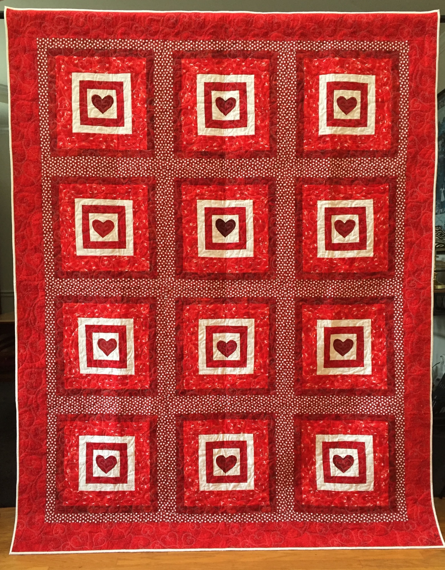 Red and white hearts on the back of the quilt complete the theme of the quilt. A label on the back documents the quilt.