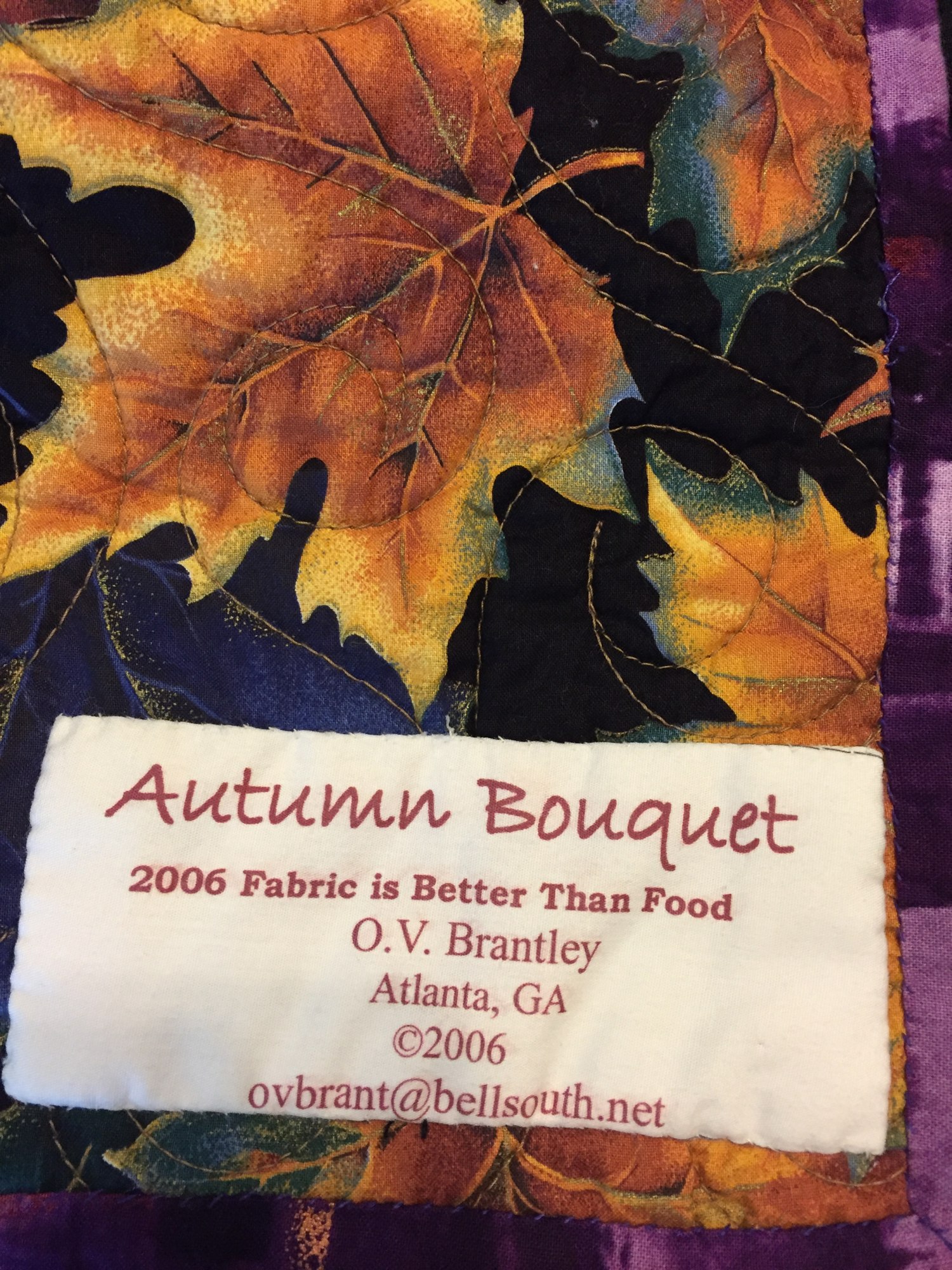 Appliquéd flowers in fall colors. Embellished with buttons and shells.