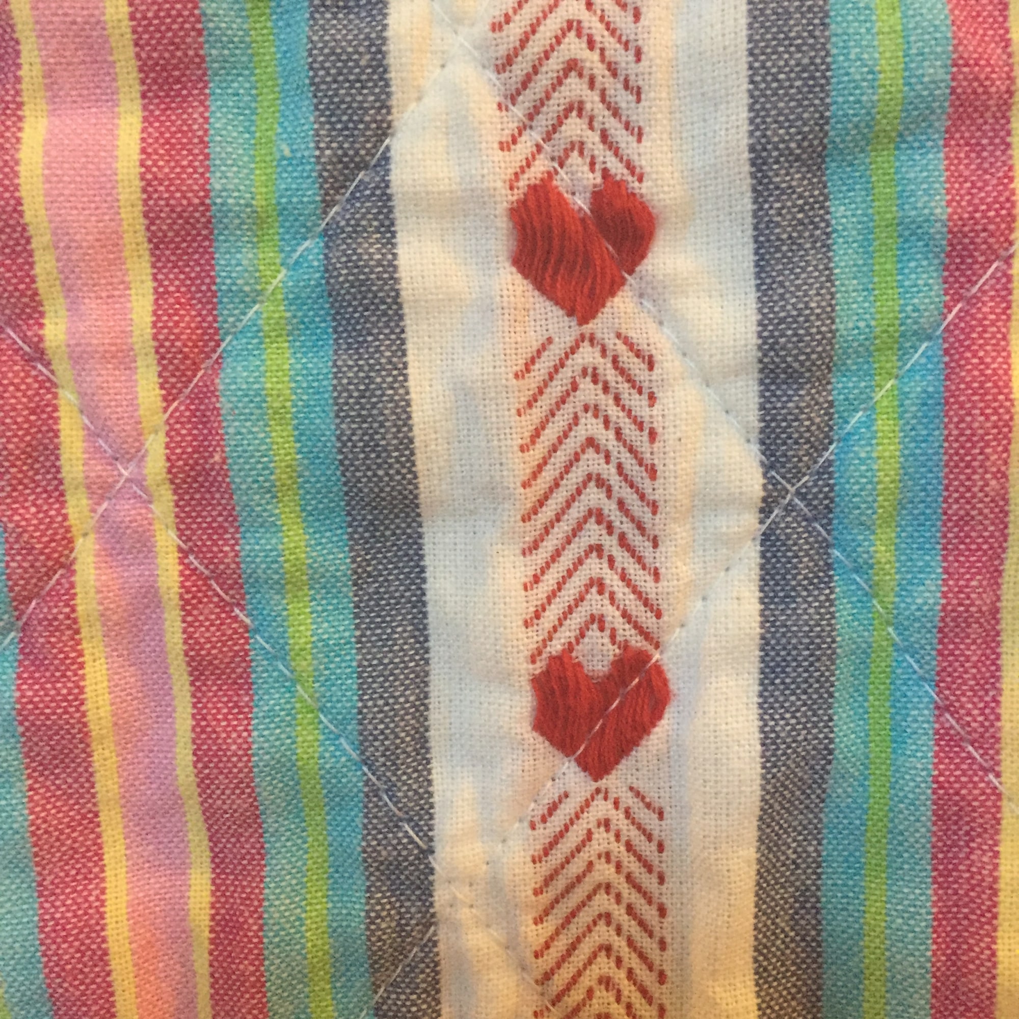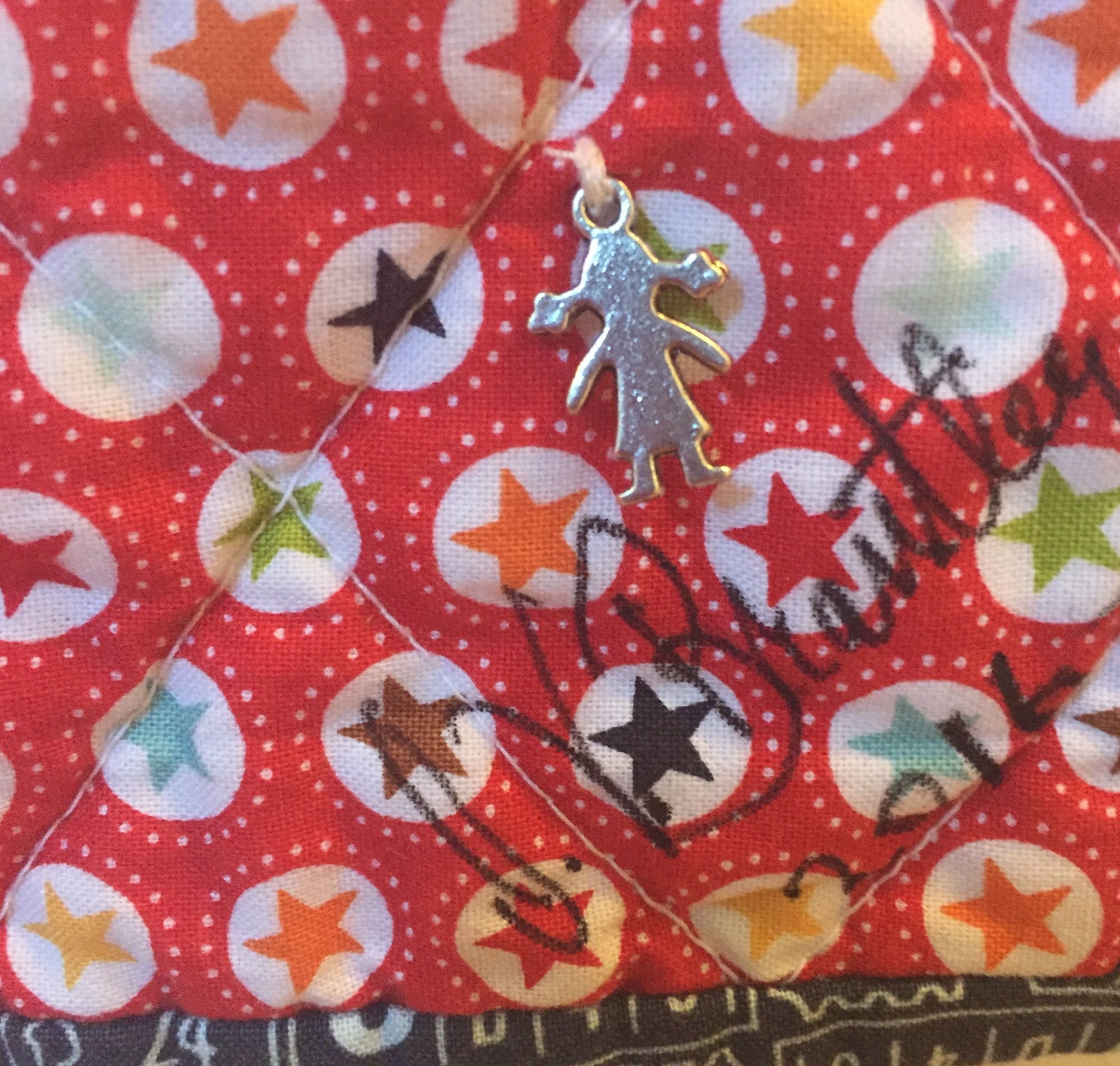 There is a hanging sleeve on the back in case you want to hang it and a label that documents the quilt. I signed it on the front. This quilt is one-of-a-kind.