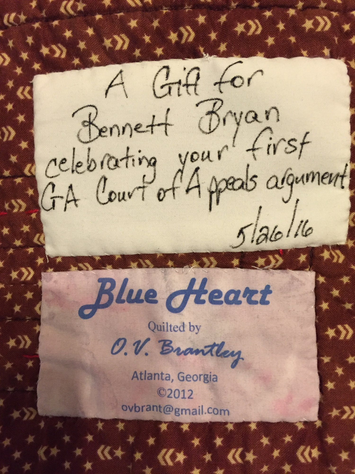 There is a hanging sleeve on the back for easy display, and a label that documents the quilt. I signed it on the front. This quilt is one of a kind.