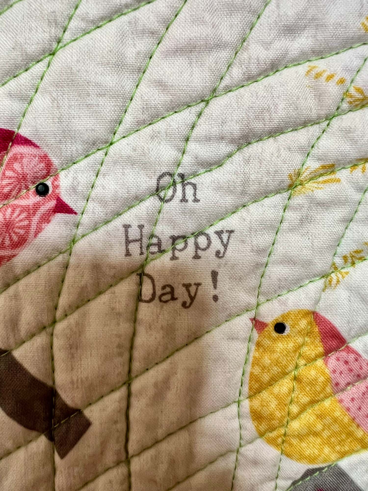 Choose Happy #4 is part of a new series of my affirmation quilts. There are six quilts in the series. Each quilt has a center panel with a positive message.