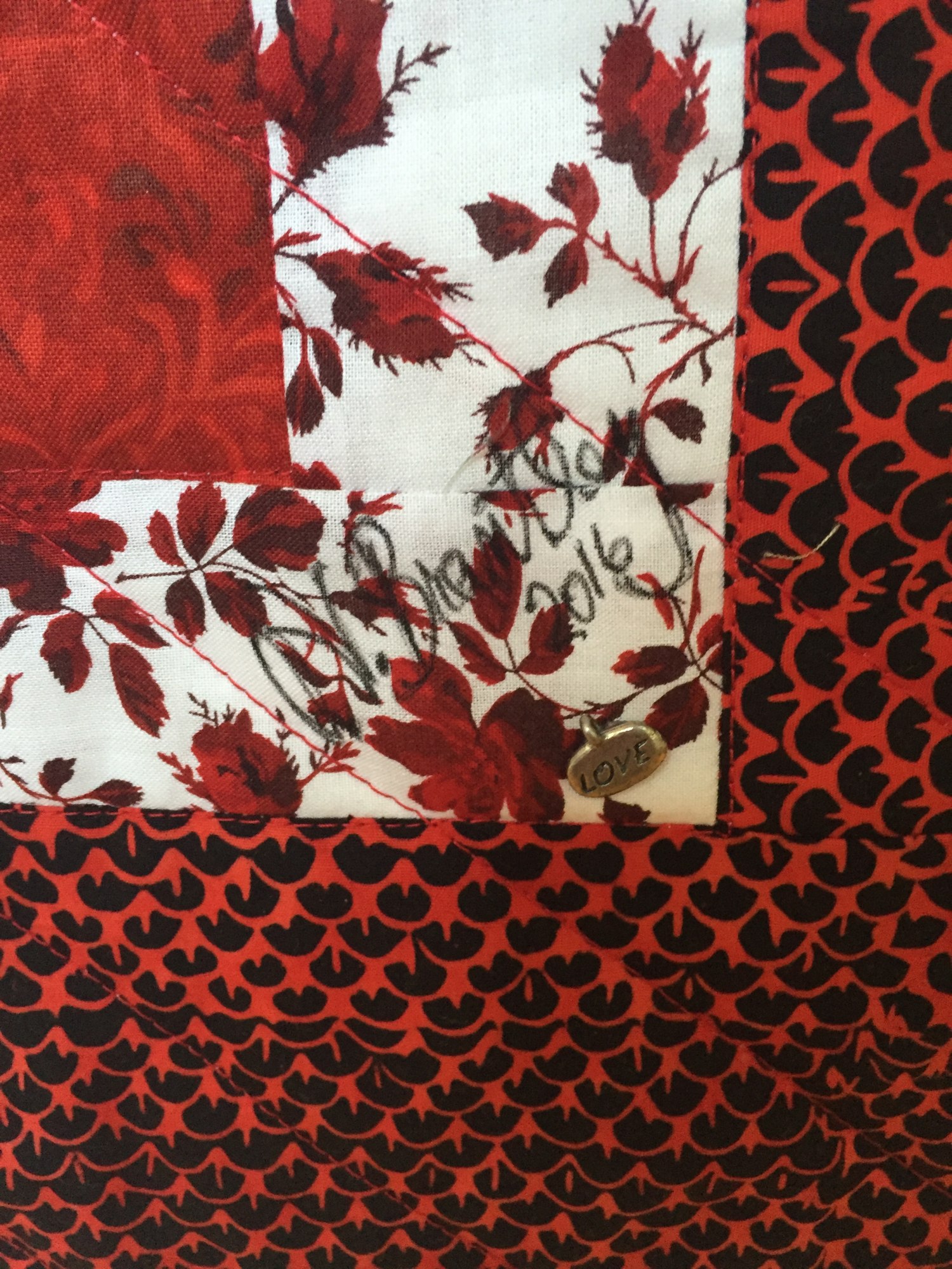 There is a hanging sleeve on the back for easy display and a label that documents the quilt. I signed it on the front.
