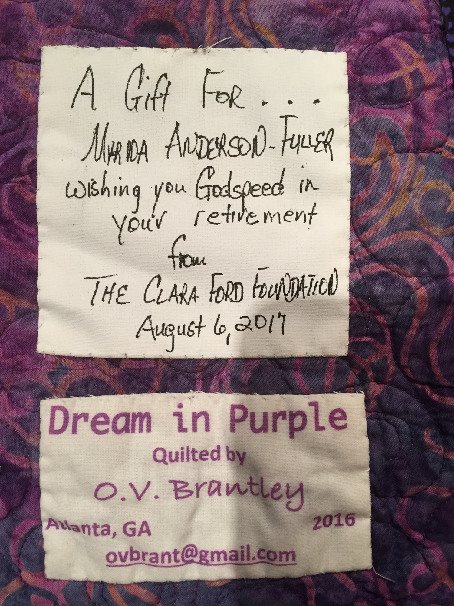 I signed it in the front. This quilt is one-of-a-kind.
