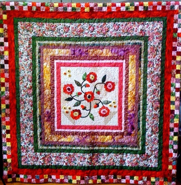 Appliquéd flowers framed by borders