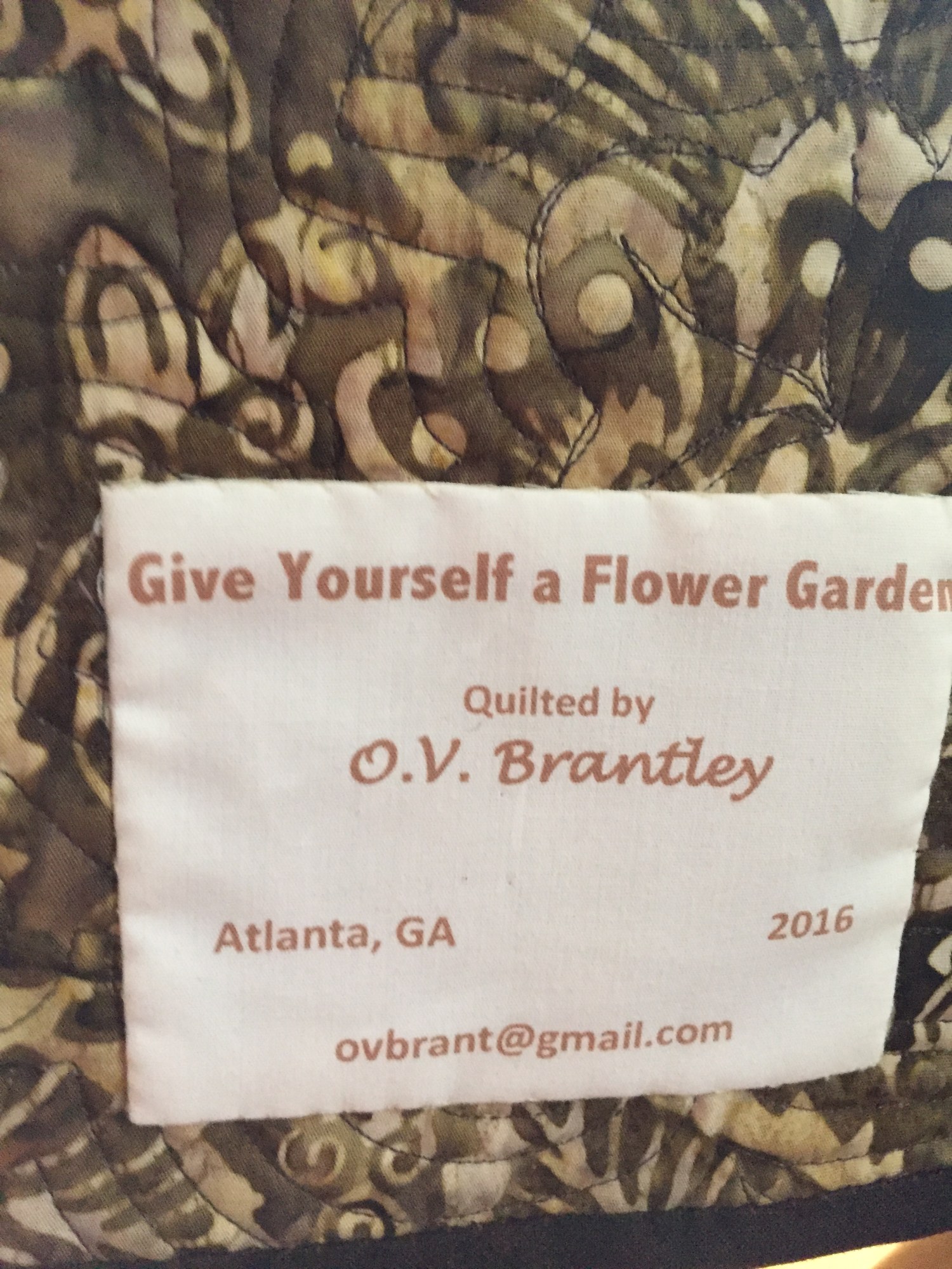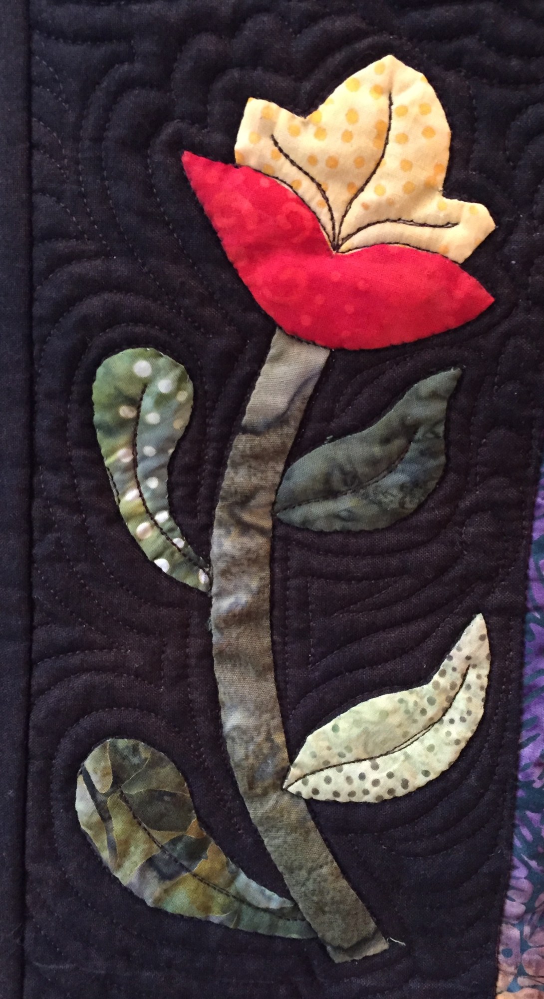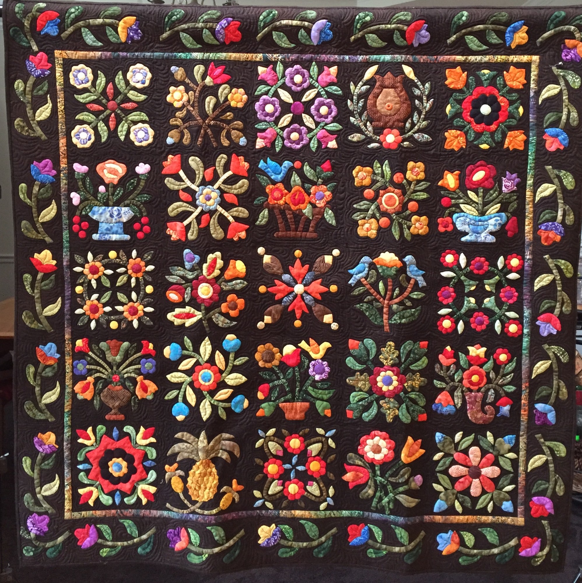 "Give Yourself a Flower Garden" was lovingly appliquéd by hand. It took 3 years for me to finish it because I kept putting it aside. The beautiful machine quilting was done by Regina Carter.