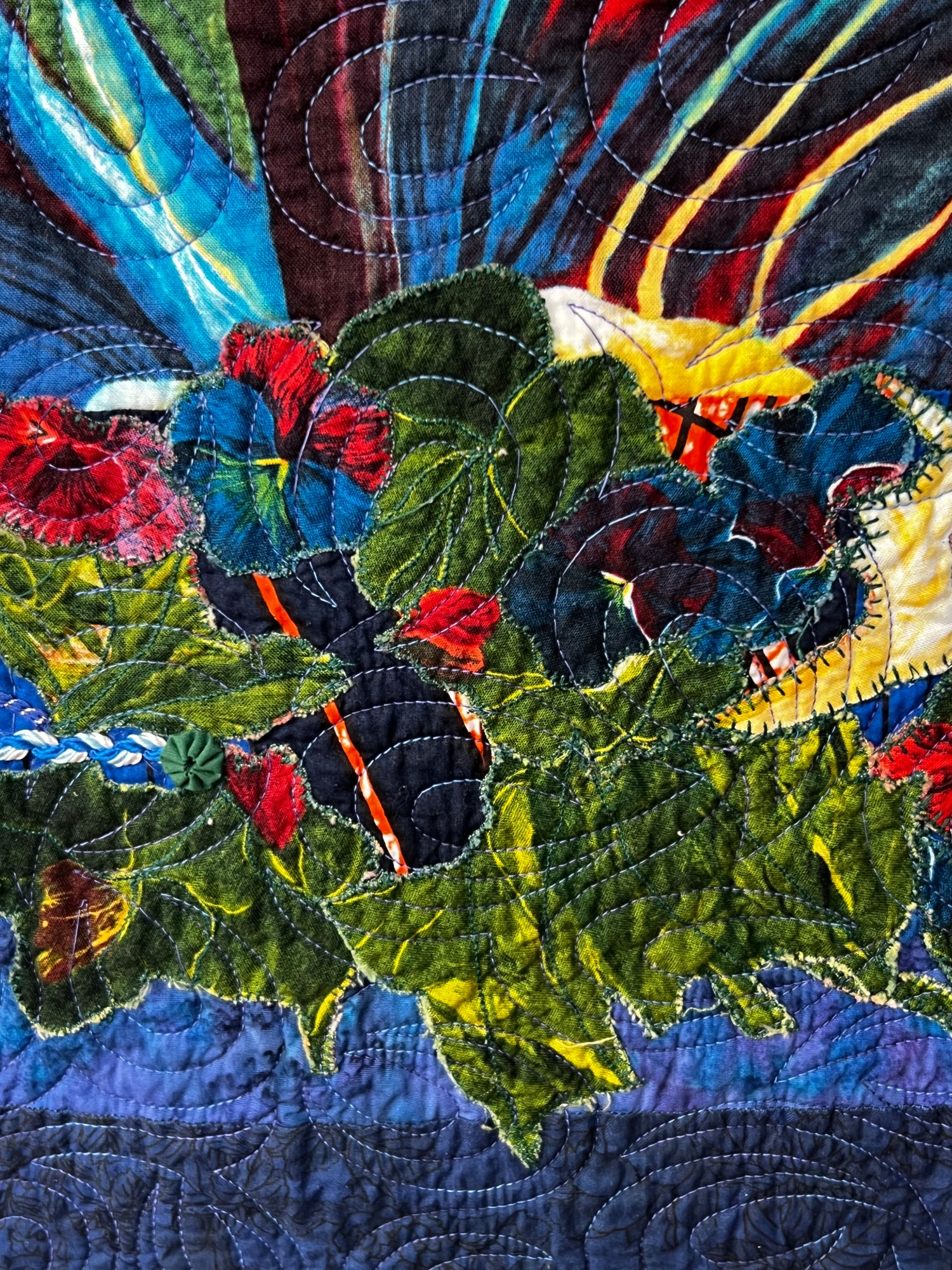 “Give Yourself a Flower on Fire” is part of my “Give Yourself Flowers” series of art quilts. This series is a reminder that we should be good to ourselves and not wait for someone else to do it.
