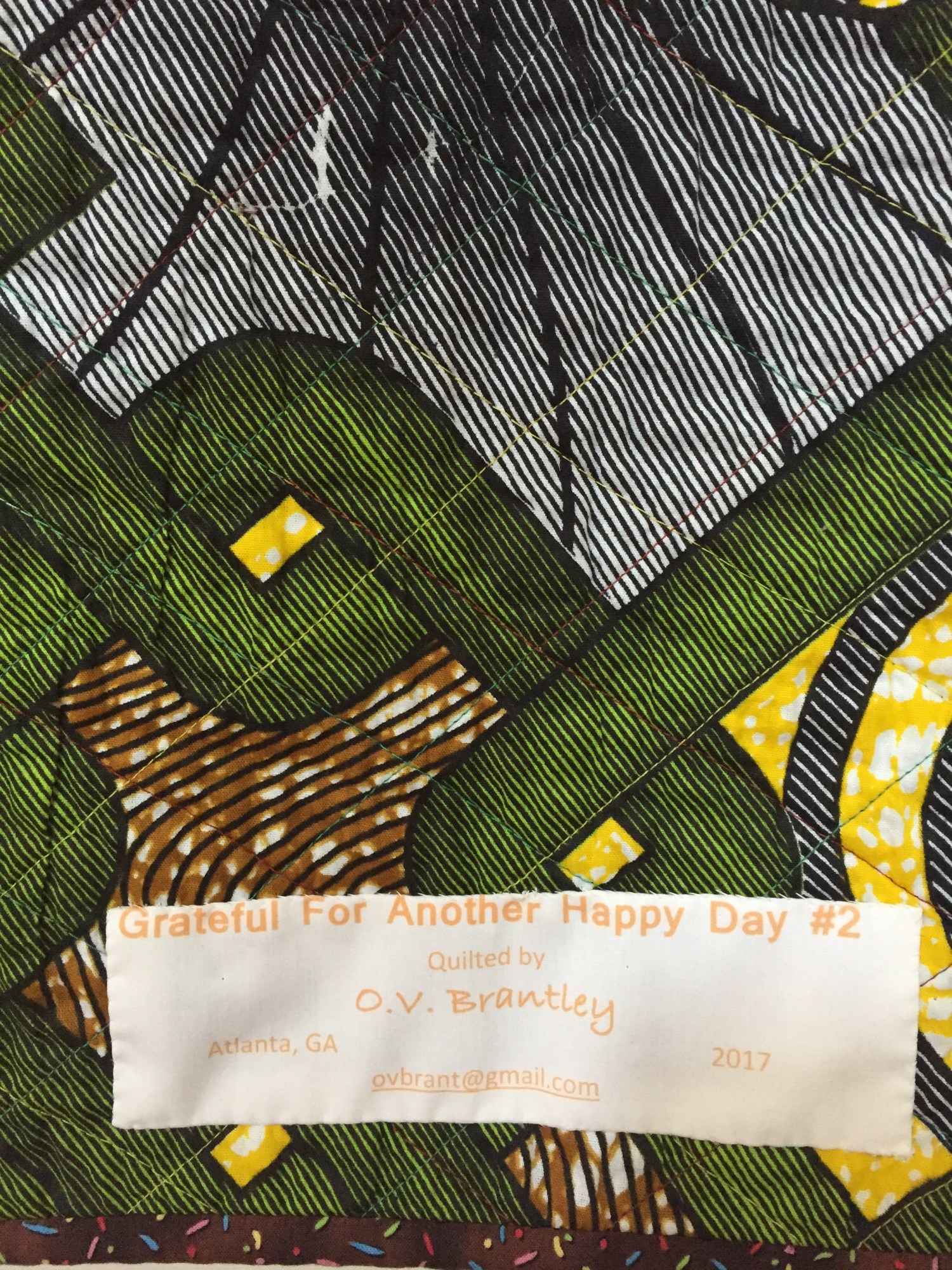 I signed and dated the quilt on the front. "Grateful For Another Happy Day #2" is one-of-a-kind.