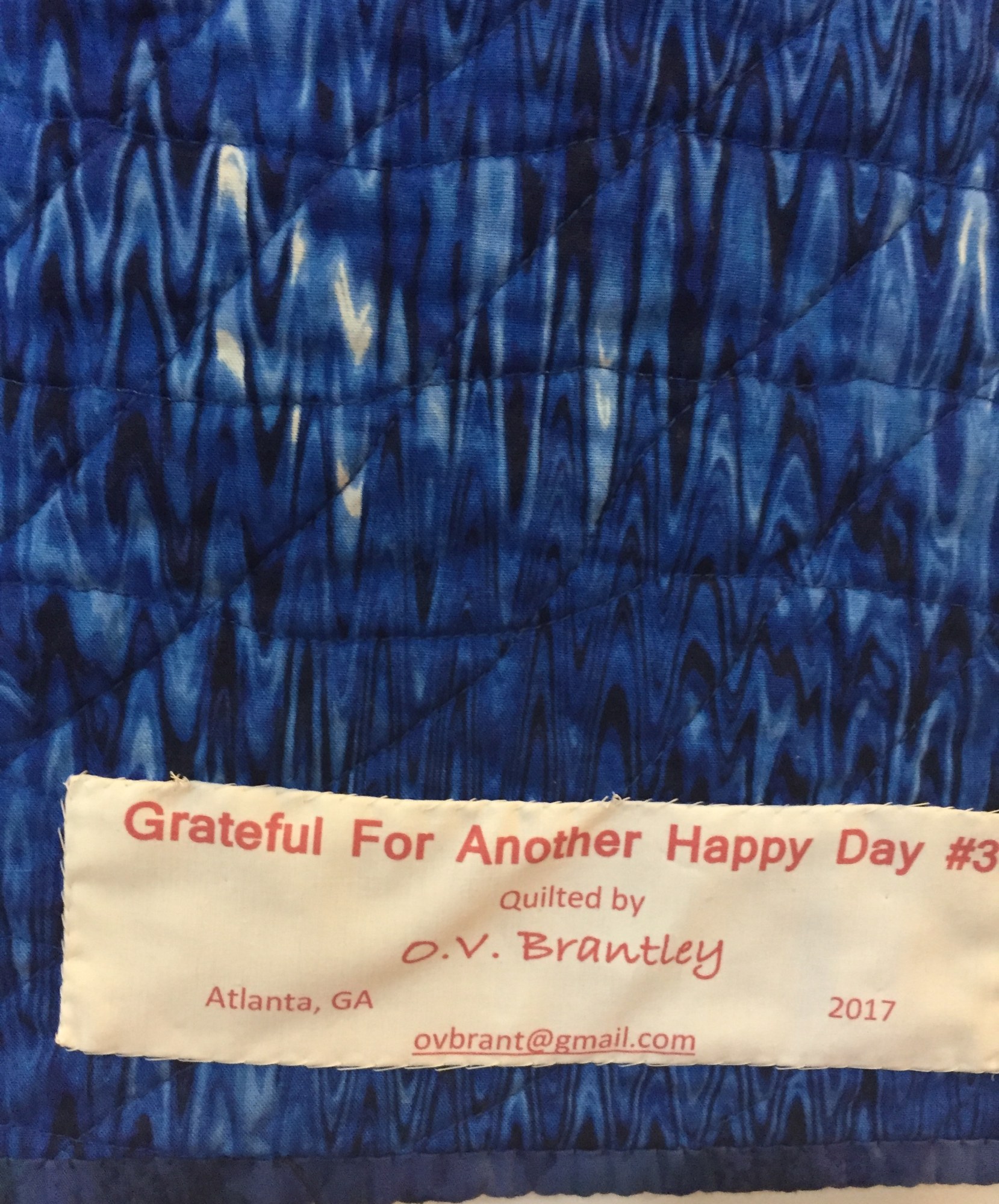 I signed and dated the quilt on the front. "Grateful For Another Happy Day #3" is one-of-a-kind.