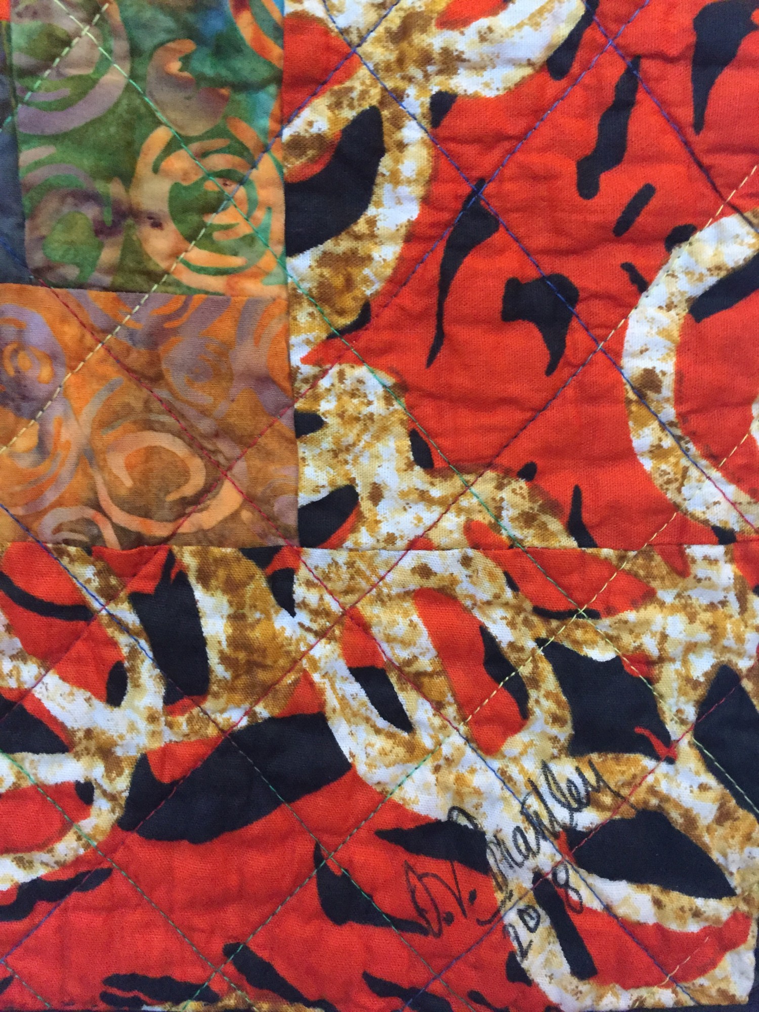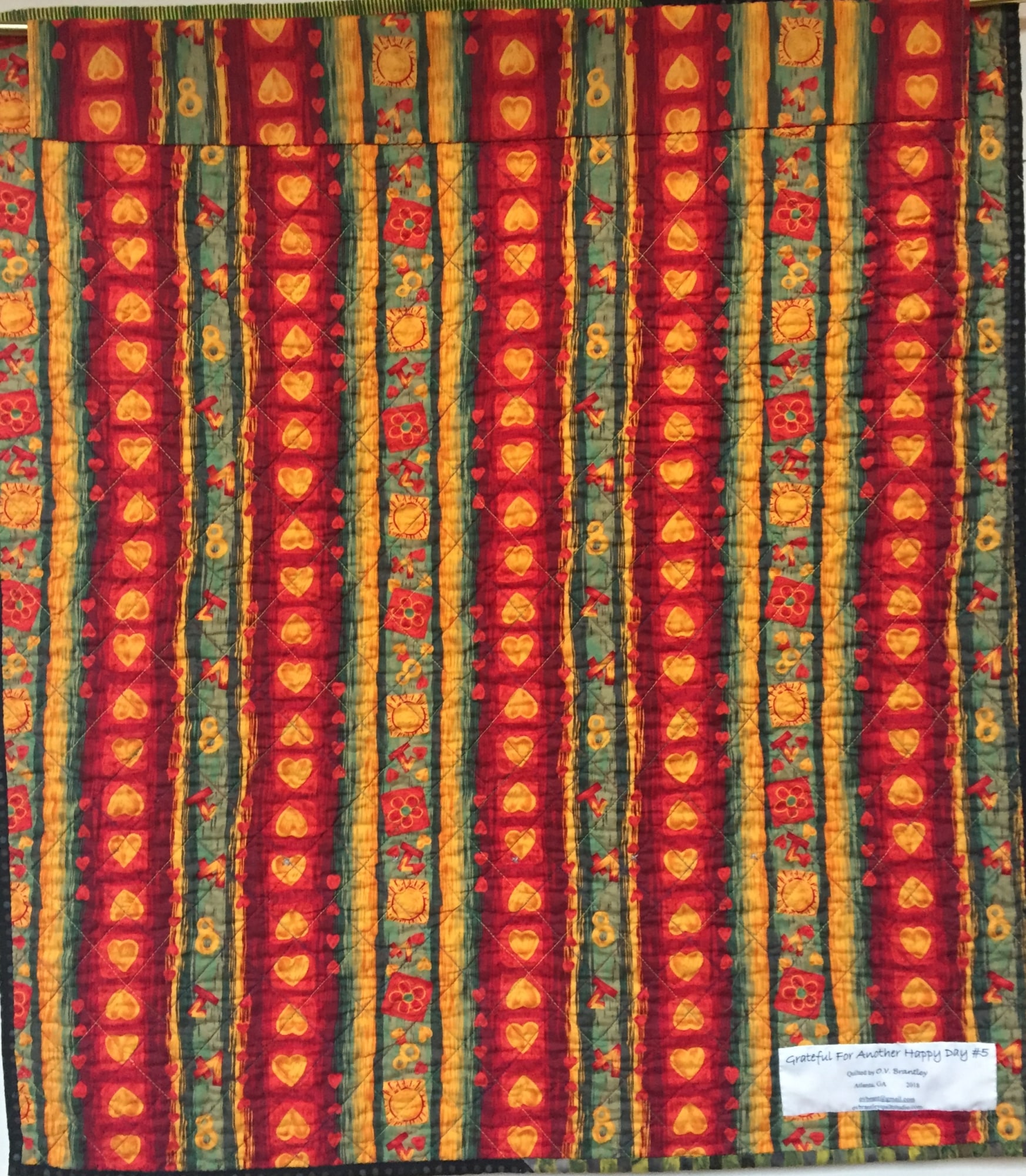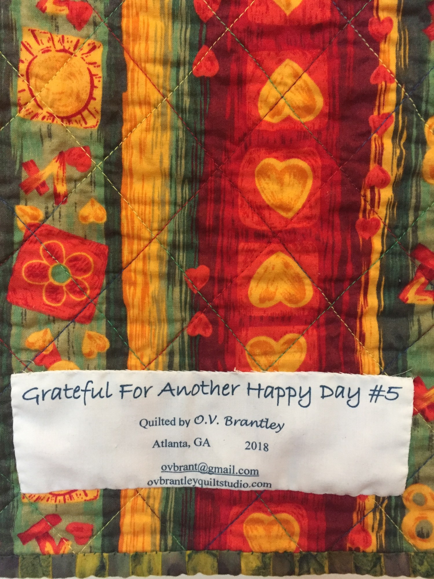 I signed and dated the quilt on the front. "Grateful For Another Happy Day #5" is one-of-a-kind.