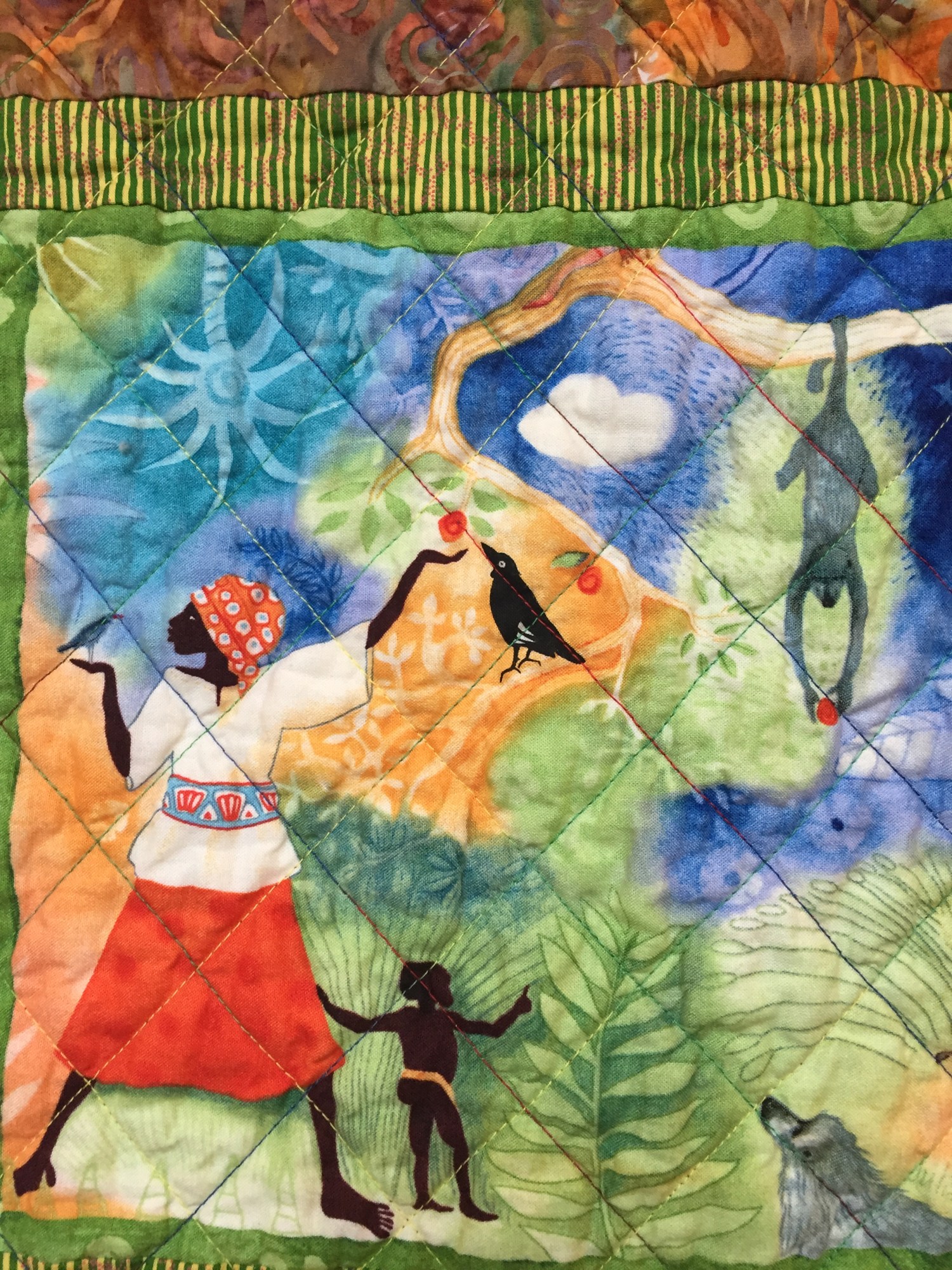 I often incorporate the word gratitude in my quilts, but now I have created a whole series focused on gratitude. The series is "Grateful For Another Happy Day", and there are 7 quilts in this series, one for each day of the week. Each of the quilts starts with a panel of a beautiful, joyful African woman by Julia Cairns.