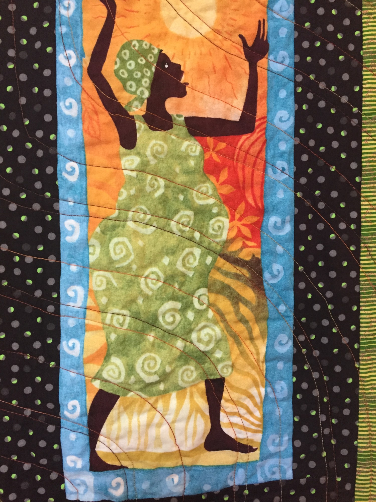 "Grateful For Another Happy Day", and there will be 7 quilts in this series. Each of the quilts starts with a panel of a beautiful, joyful African woman by Julia Cairns.