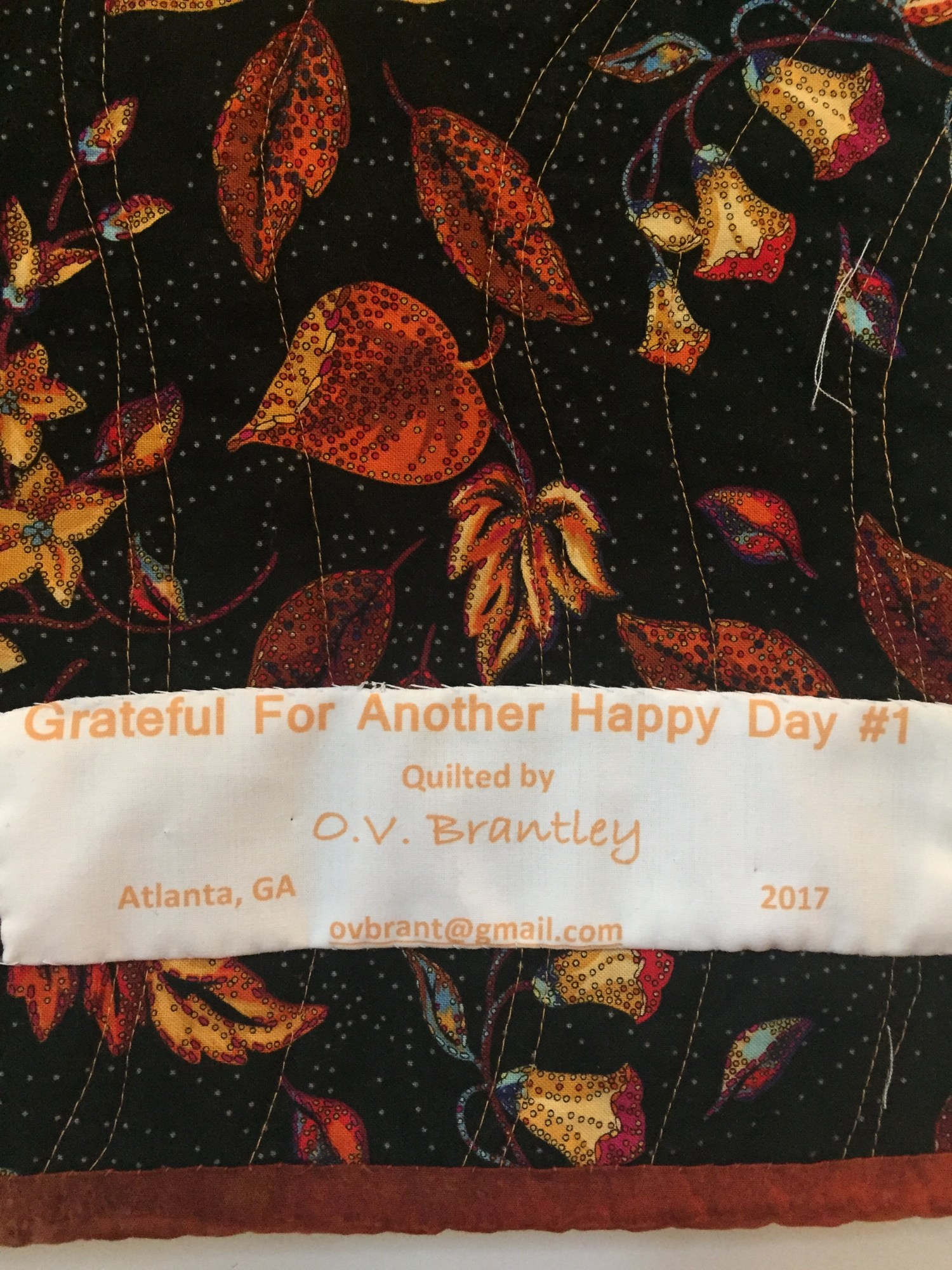 I signed and dated the quilt on the front. "Grateful For Another Happy Day #1" is one-of-a-kind.