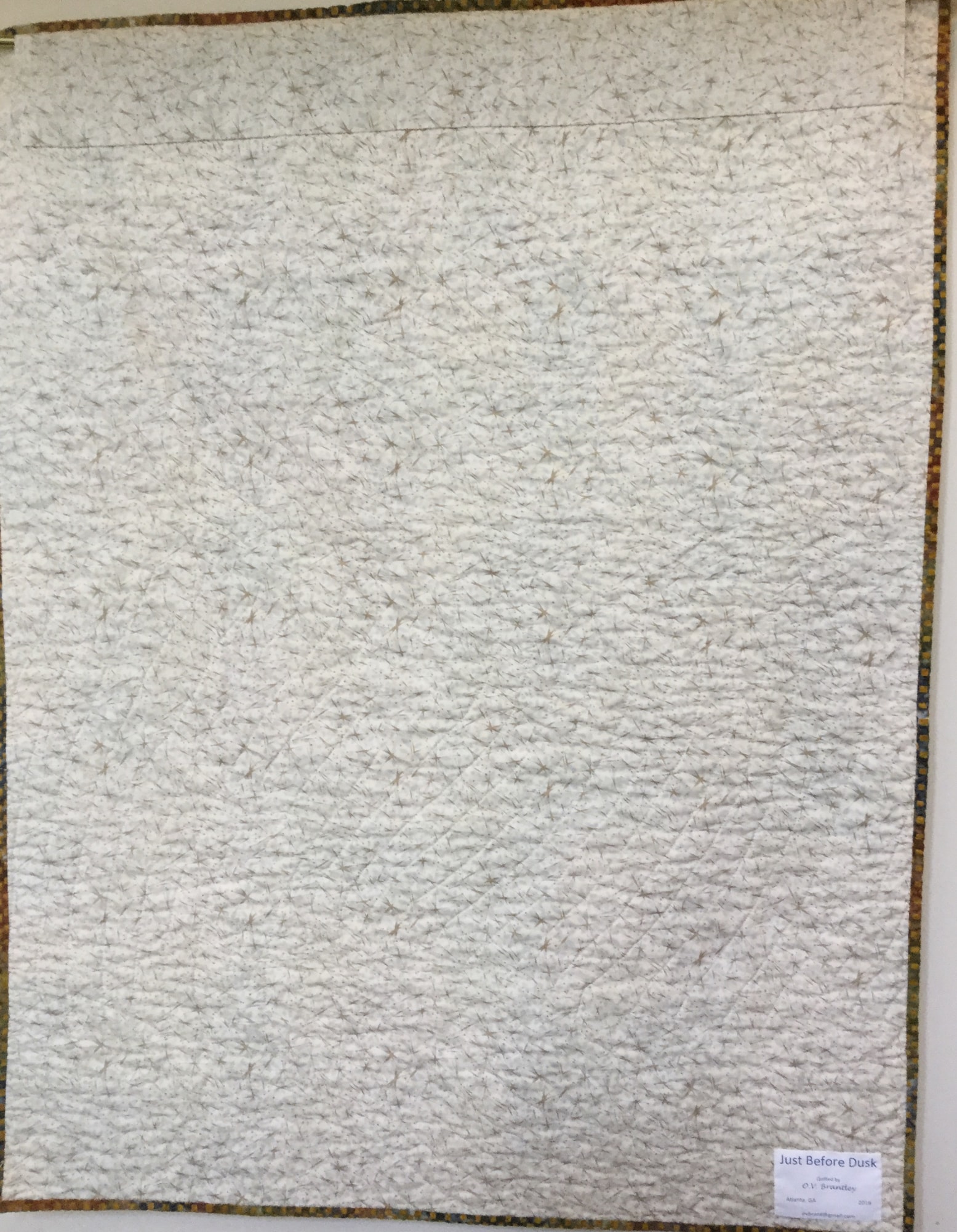 I pieced the quilt on my sewing machine and quilted it in a slow undulating, wavy pattern. The batting is 80/20 cotton polyester to make it soft while preventing fold lines.