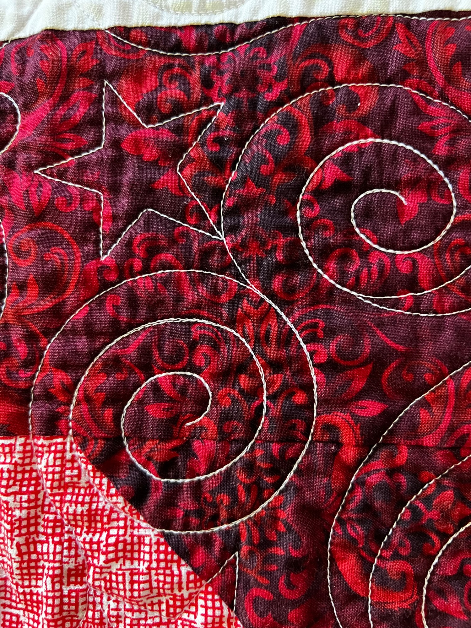 Reveal Your Inner Star is a new addition to my red and white quilt collection. It is a very simple illusion quilt using only two colors.