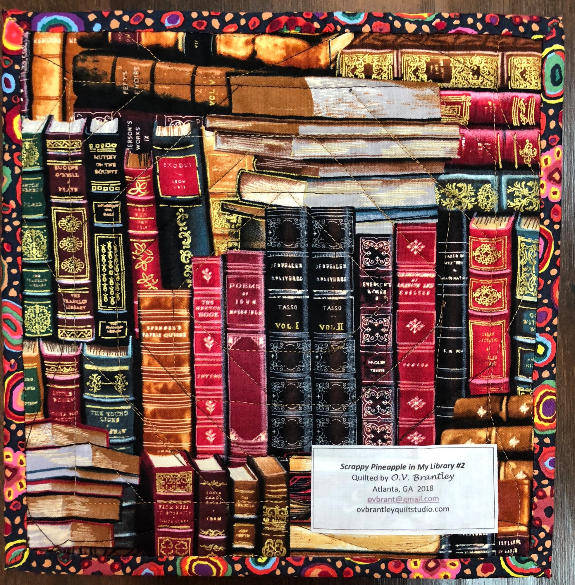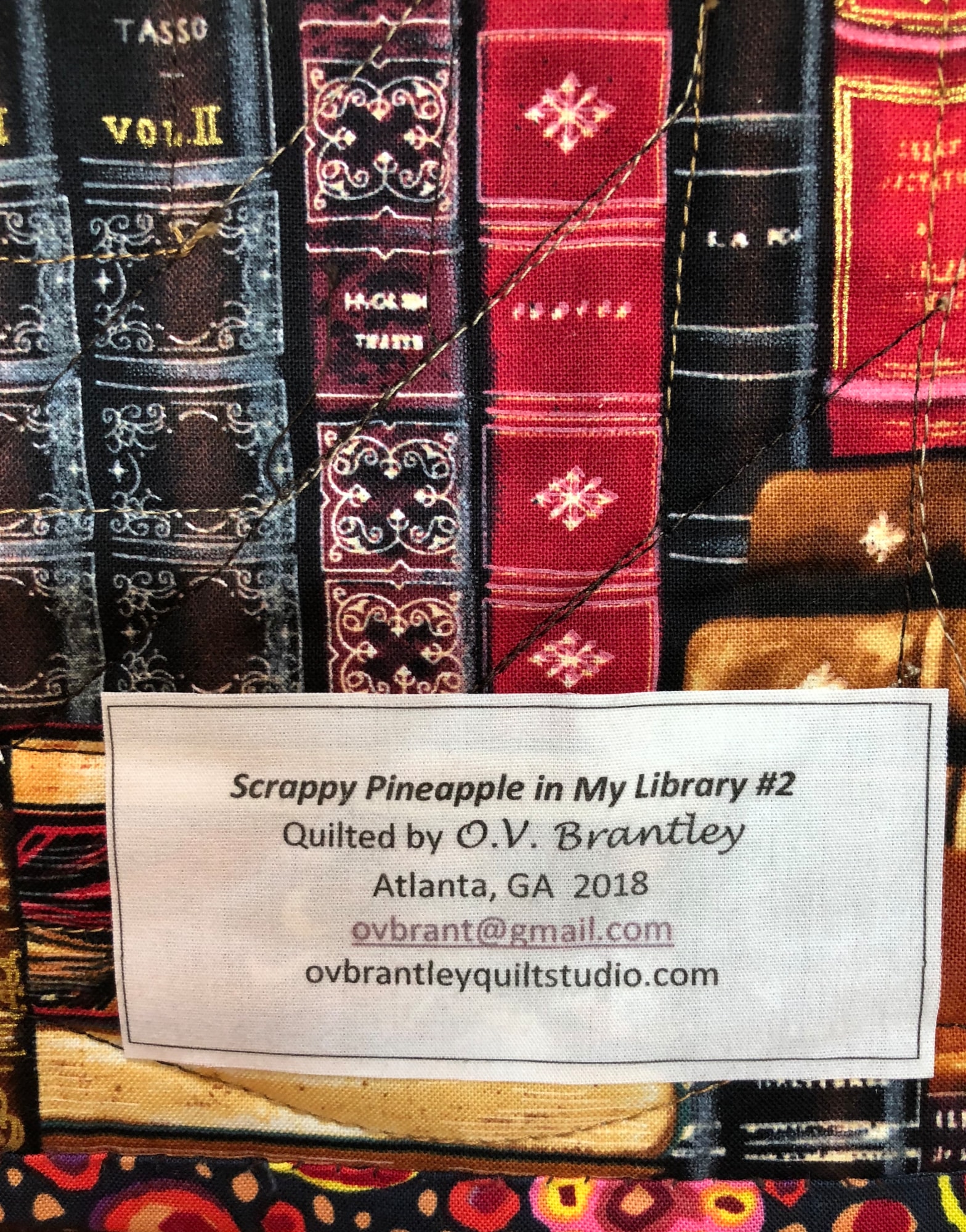Scrappy pineapple block with library fabric on the back