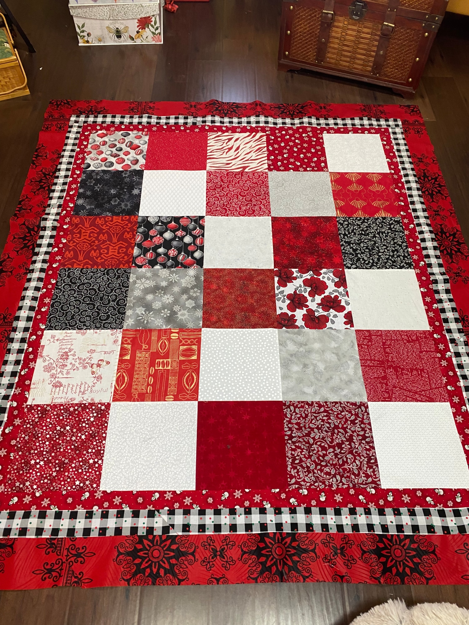 Snow Days are Snuggle Days is both the latest addition to my red and white quilt collection and my Christmas quilt collection.