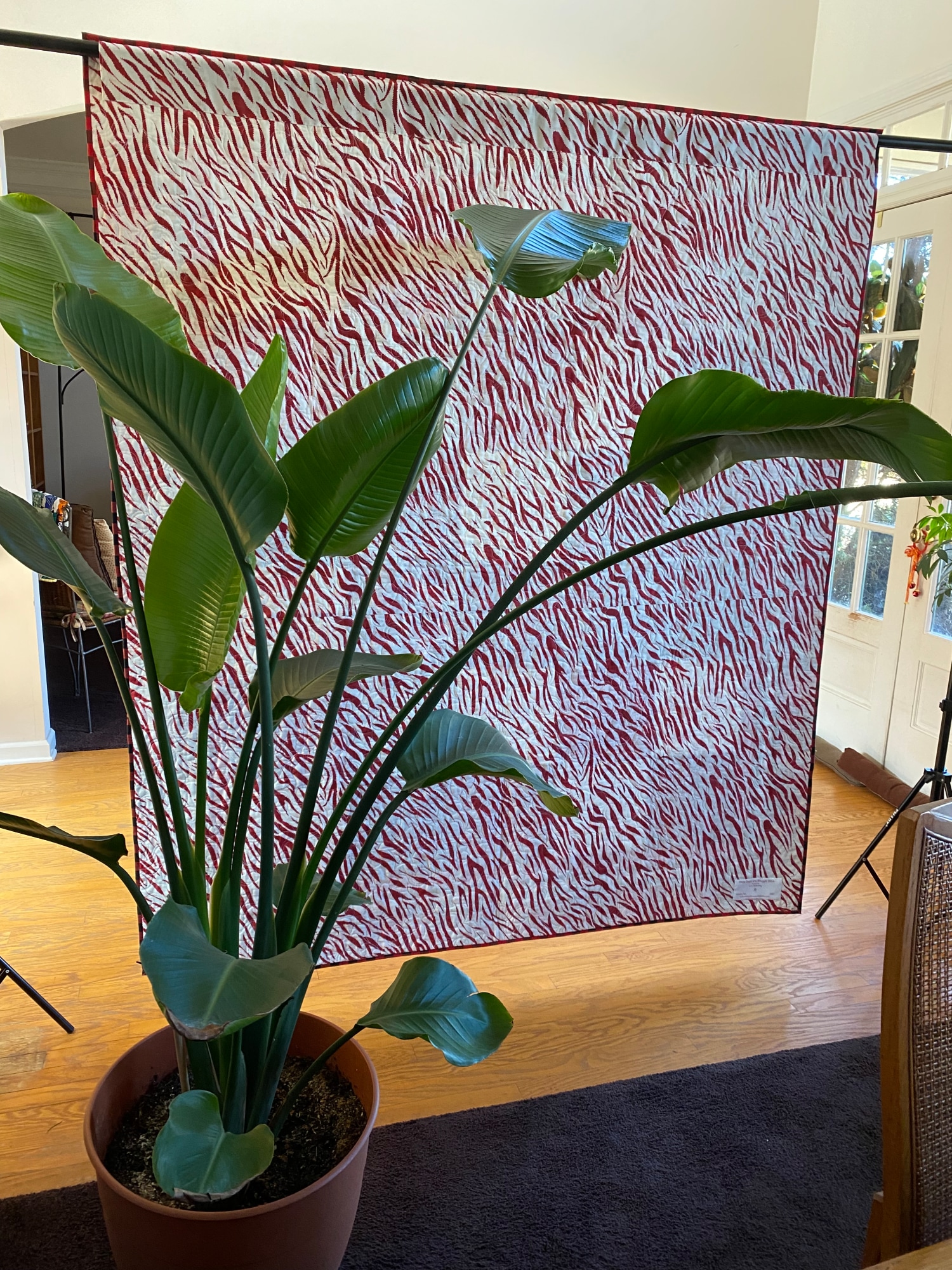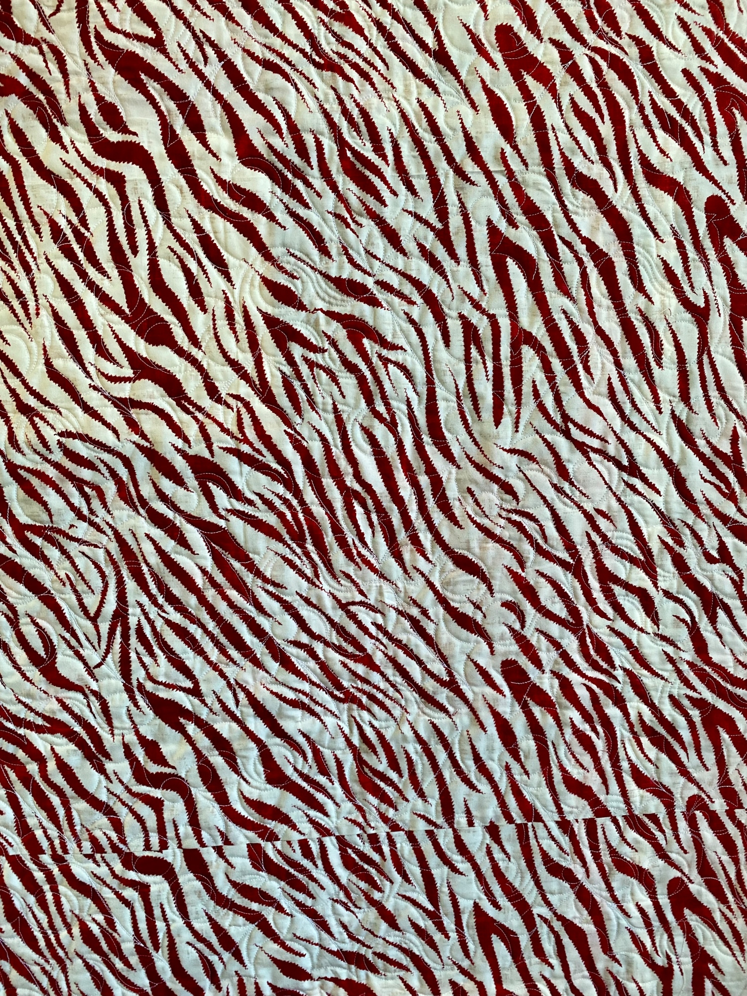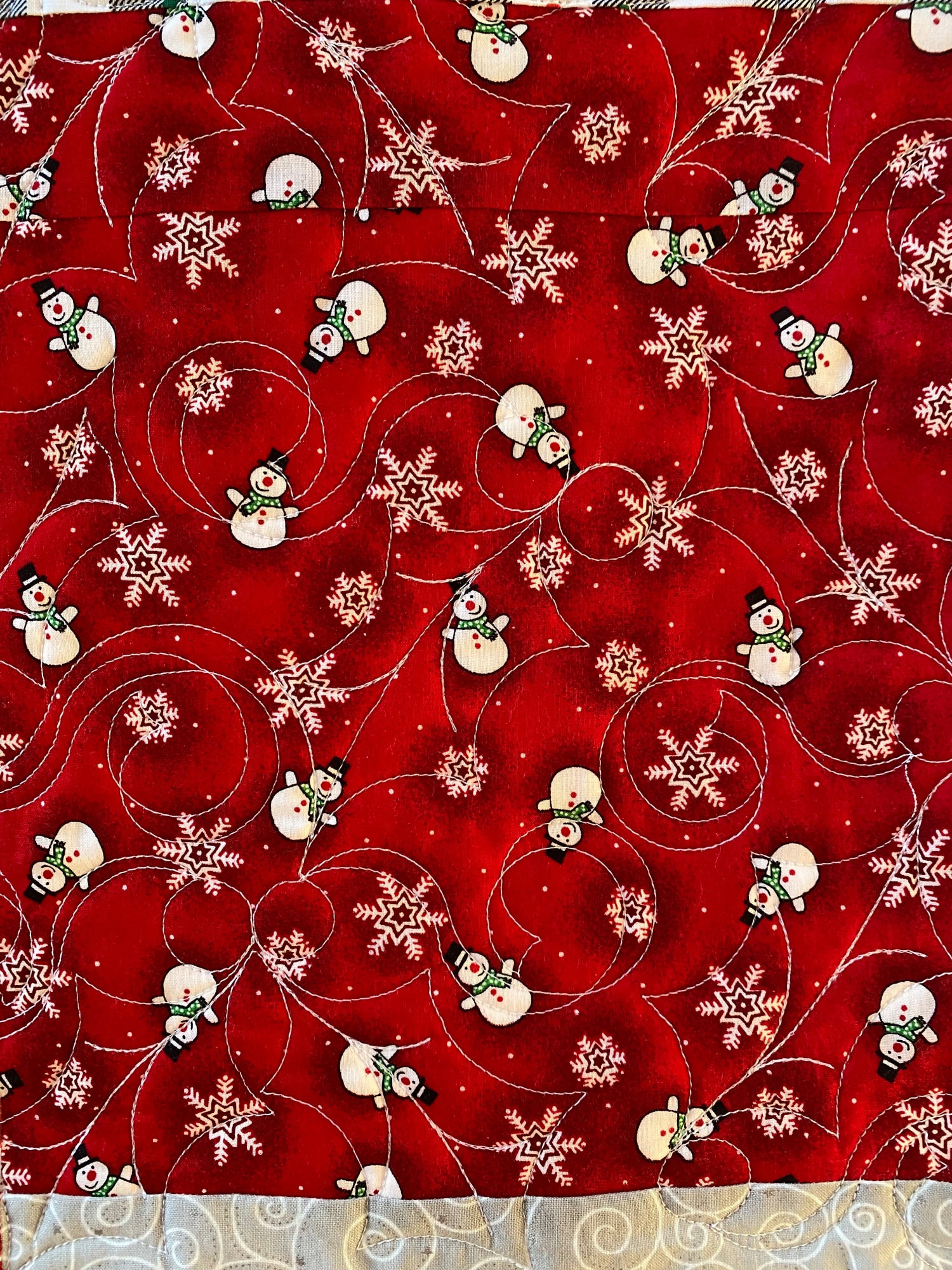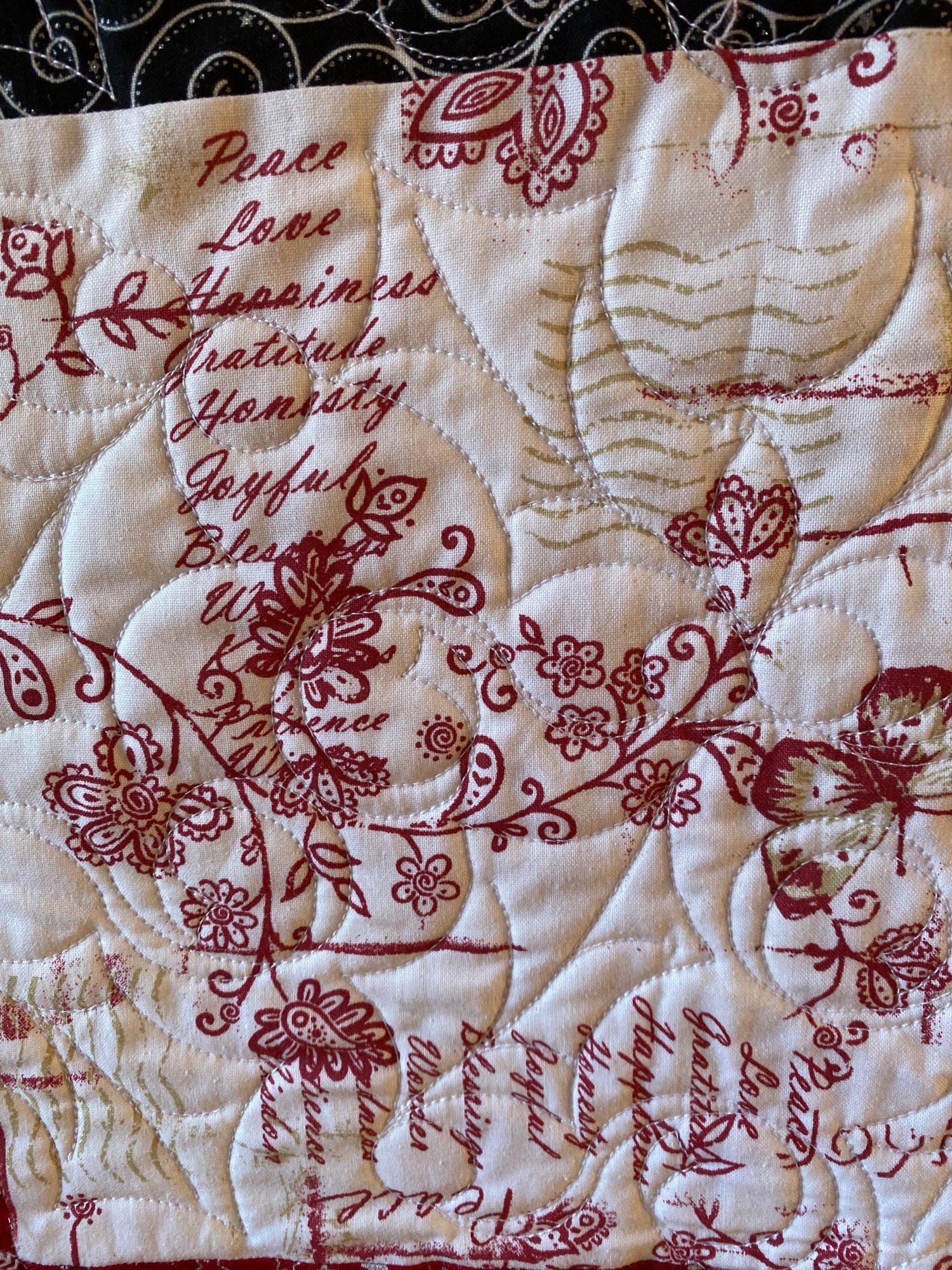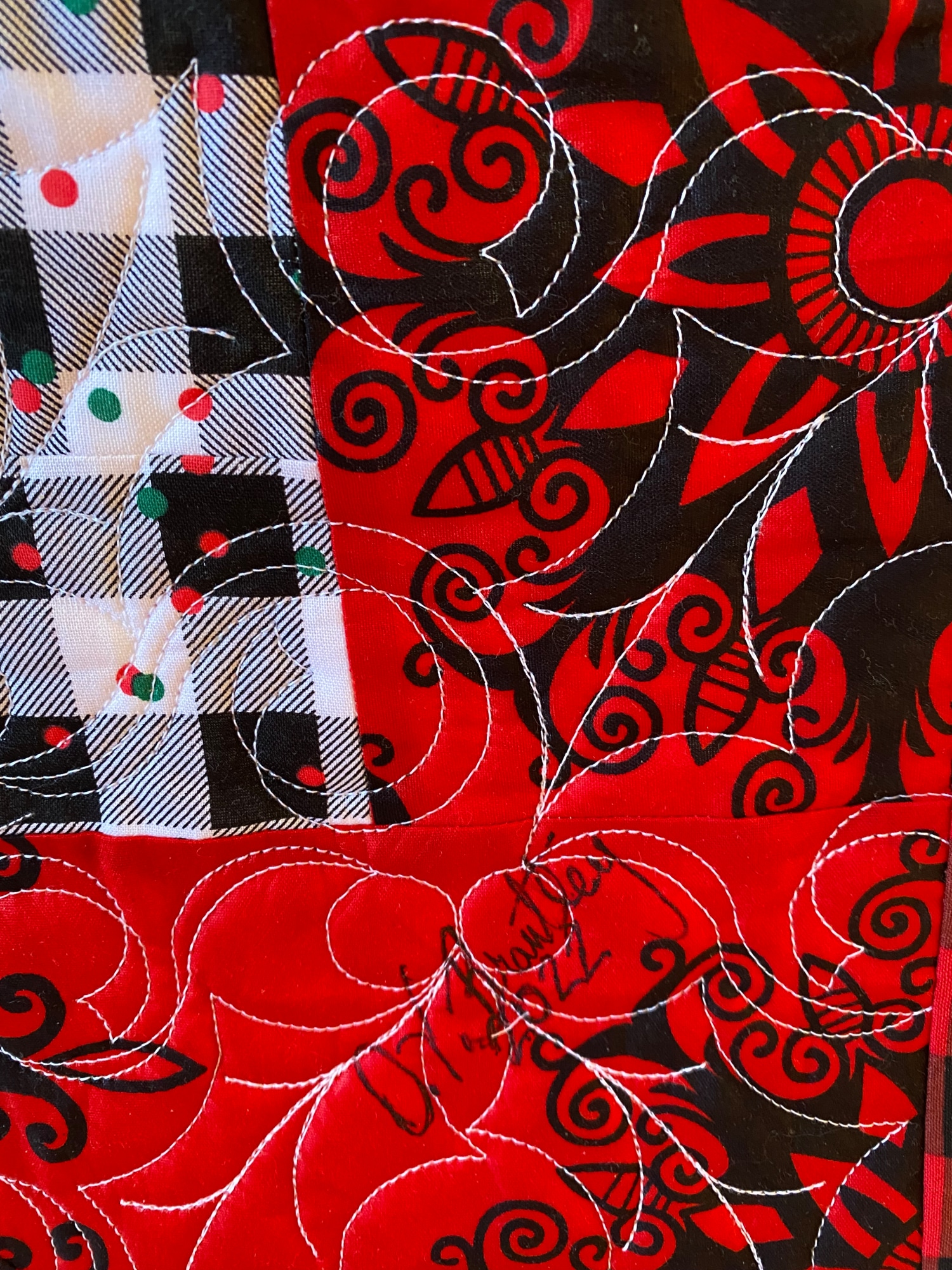 My long arm quilt Maxine Moore quilted a festive holly leaf in the the background of the quilt.