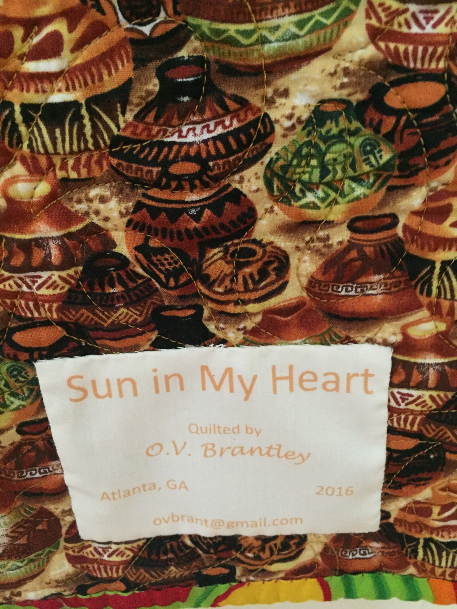 There is a hanging sleeve on the back for easy display and a label that documents the quilt. I signed it on the front.