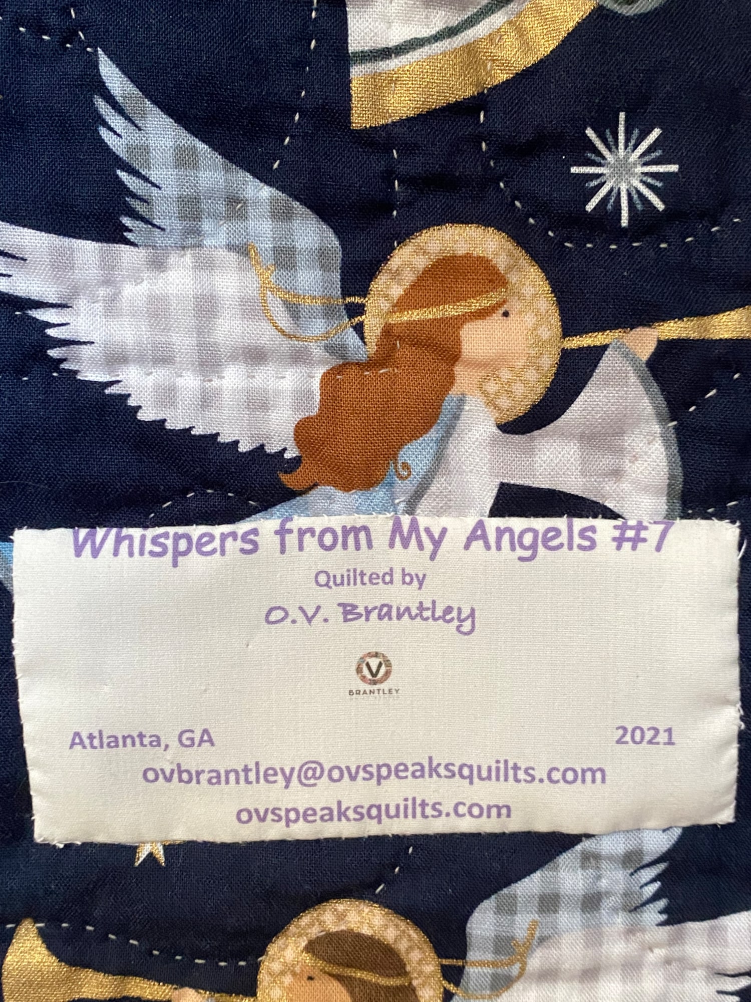 Of course there is angel fabric on the back to carry out the theme of the quilt. There is a hanging sleeve for easy display and a label that documents the quilt.