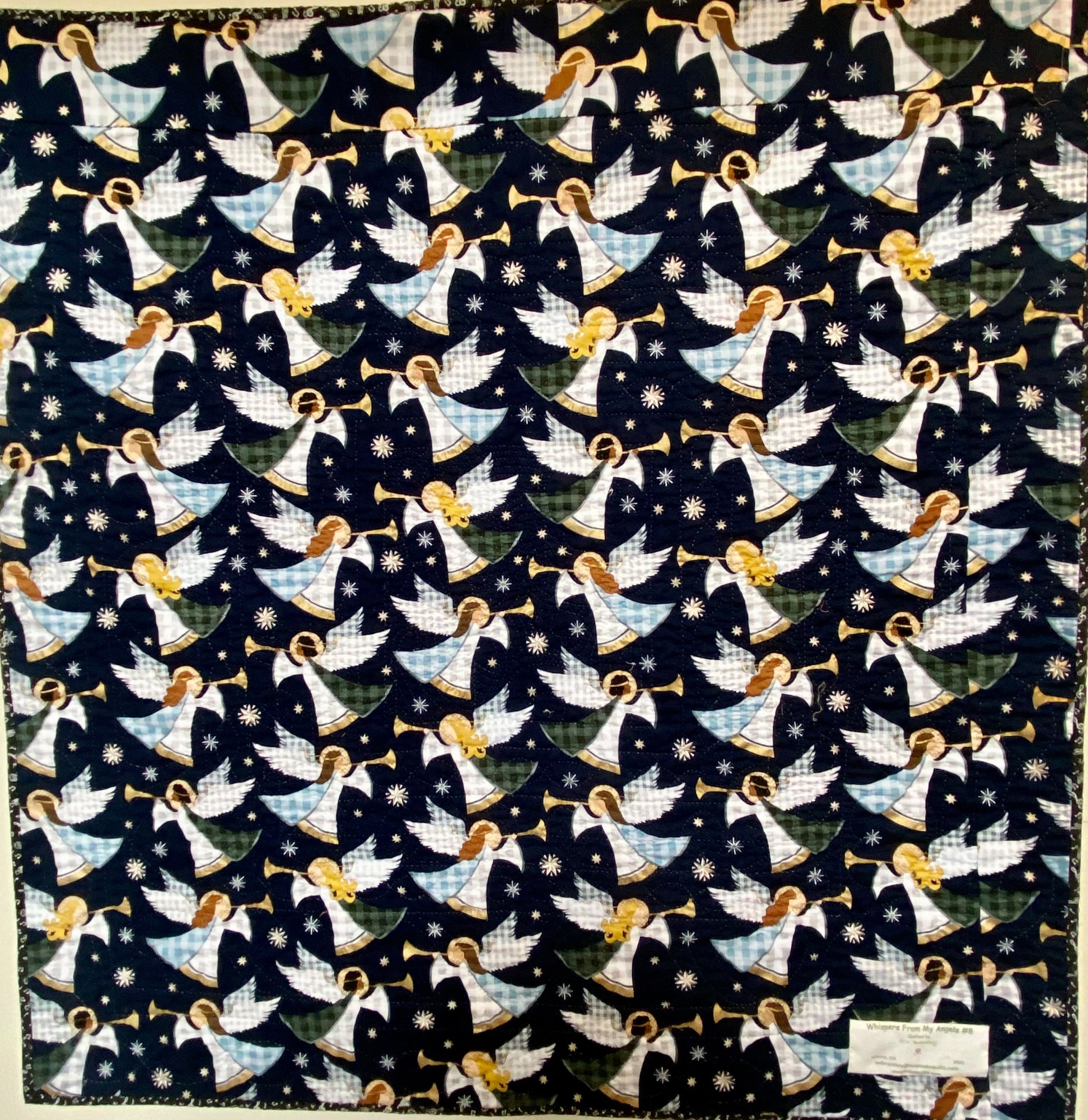 Of course there is angel fabric on the back to carry out the theme of the quilt. There is a hanging sleeve for easy display and a label that documents the quilt.
