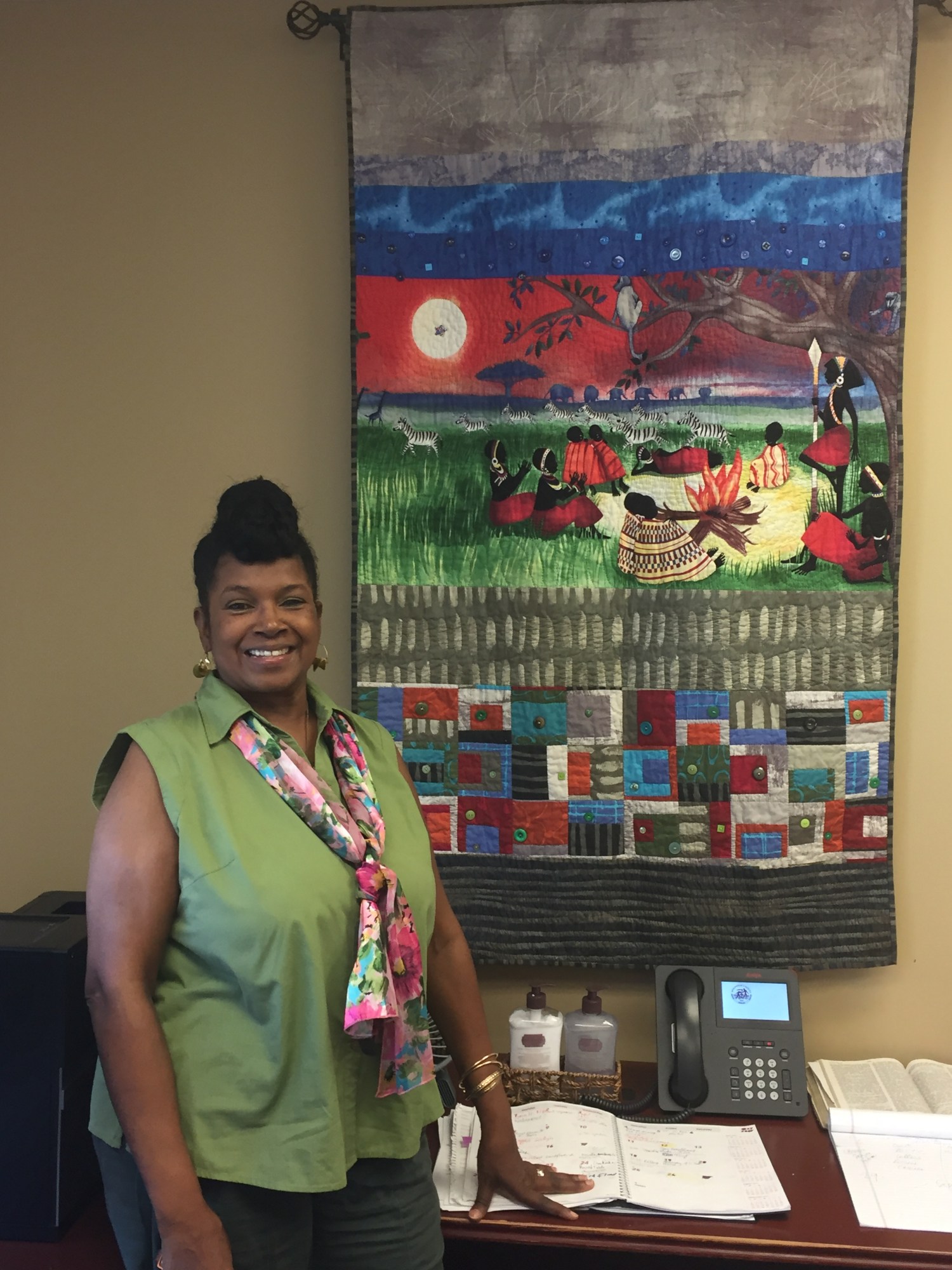 My quilt "Woman's Work is Never Done" is inspired by the woman warrior who must watch over her family even as the sun sets. The middle of the quilt is a panel that is surrounded by other fabrics to invoke a scene.