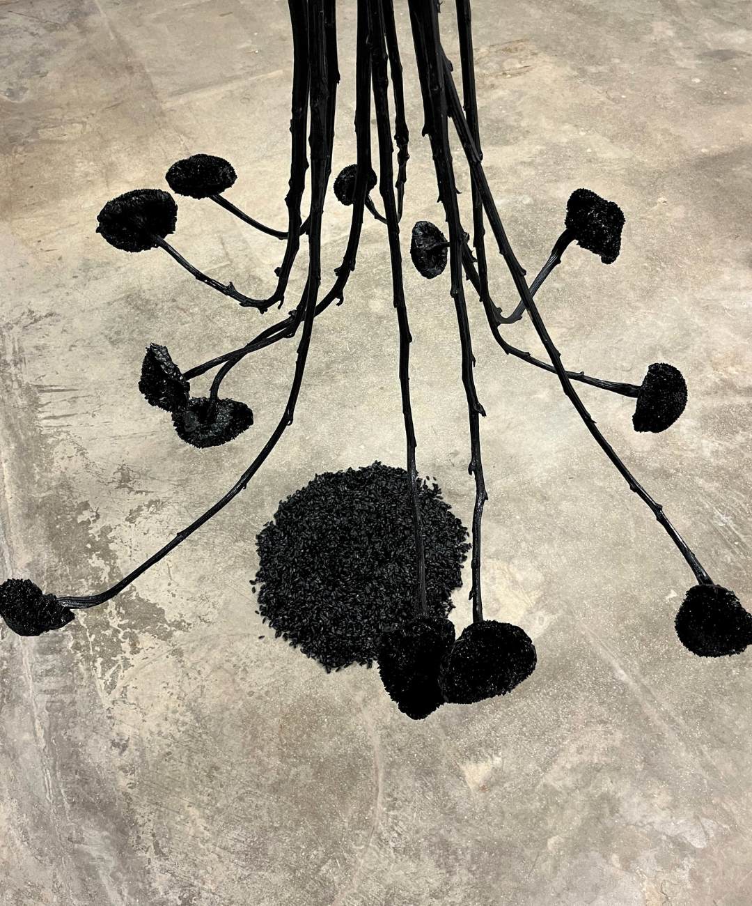 Dried sunflowers, rope, tree, sticks, acrylic paint, wood glue