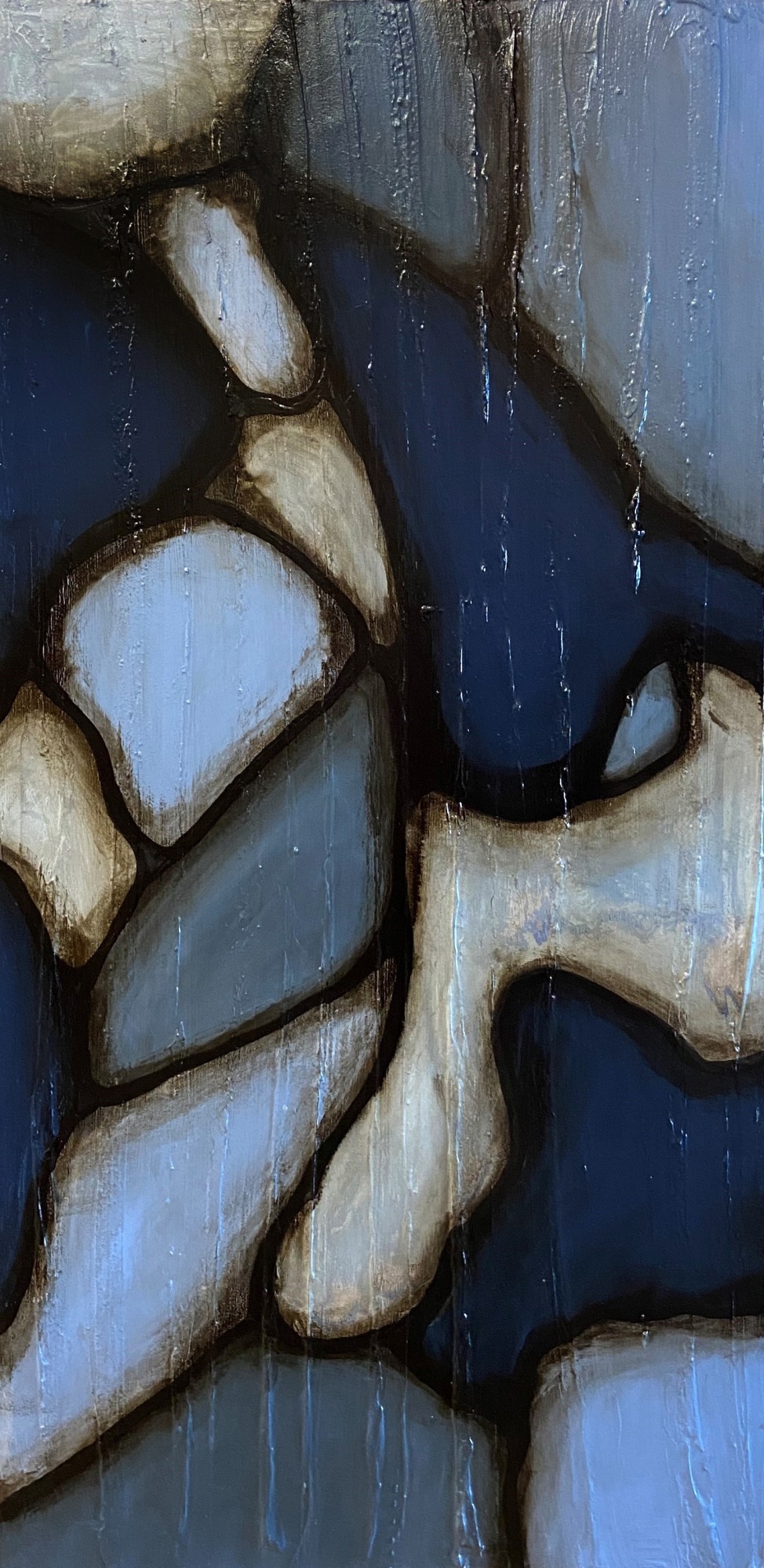 Concrete, acrylic, and stain on wood