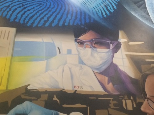 Eric Henn created this hand-painted mural with imagery that is reflective of the work being done at the Bowling Green BCI Facility. He collaborated with staff, taking ideas and suggestions, to create a desirable rendering to all parties involved. The finished mural is photo-realistic with considerable attention given to perspective, use of color and detail.
