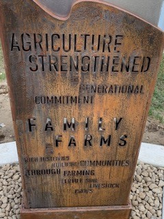 "Cornerstones," consist of three pillars made of stainless steel, Corten steel, and sculpted glass on a limestone and black-stone pebble plaza. The sculpture tells the story of Lima over the past two centuries. It incorporates elements from Lima's industrial, cultural, and architectural history, while recognizing the repositioning of the city with the help of Rhodes State College into a modern hub of health care education and innovation.