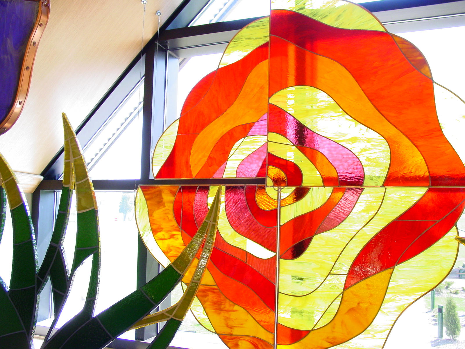 ''One Garden'' is a permanent glass art installation in three building areas. In the Social Center is a glass sun element, a standing leaf and two Morning Glory pods in front of windows. On a soffit are eight glass wall mosaics, eight glass leaves and seven glass Morning Glory flowers. Outside in the pavilion is a glass leaf, a Morning Glory flower and three moon dust elements. By the gym is a moon element and an earth element in front of windows. Above the vestibule are six glass mosaics depicting grass and two Moonflower pods. There are six glass wall mosaics and in the ceiling are eight Moonflowers, three shooting stars and a moon dust path.