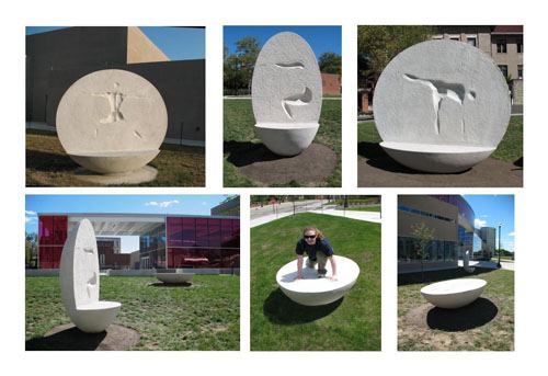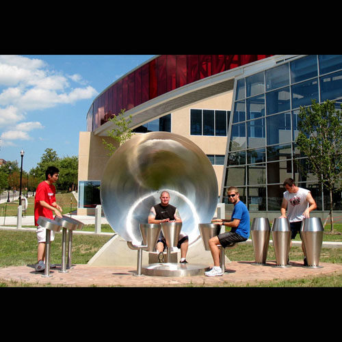 Bill and Mary Buchen designed ''OSU Interactive Sculptures'' for several areas outside Larkins. Cast benches called ''(M) Body'' at the entrance of the convergence area are six concrete benches with images life-cast into them. ''Percussion Celebration'' in the triangular area of the front yard is a variety of drums that provide a different kind of energy release from physical activity. The instruments include talking drums, sun gongs, a parabolic dish, djembe drums and an earth drum (played with one's feet) in the paving scheme.