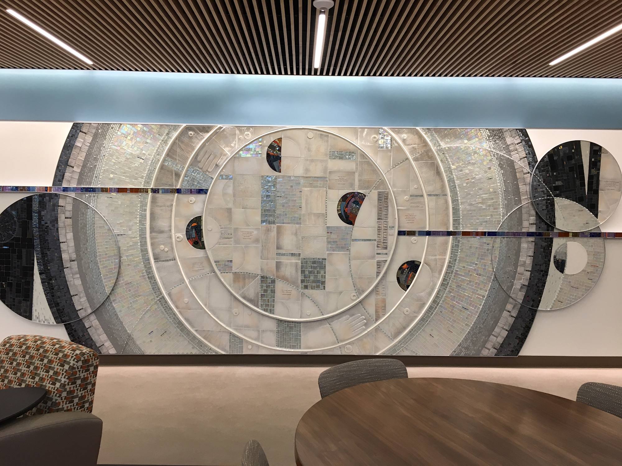 The timeless medium of mosaic art is a metaphor for our communities. Every single piece is enhanced by its relationship to the pieces around it. And each individual piece is an integral part of the big picture. The artwork brings light, color, joy, and healing into the lives of students, faculty, patients, and visitors and inspires them to make a difference and be a difference.