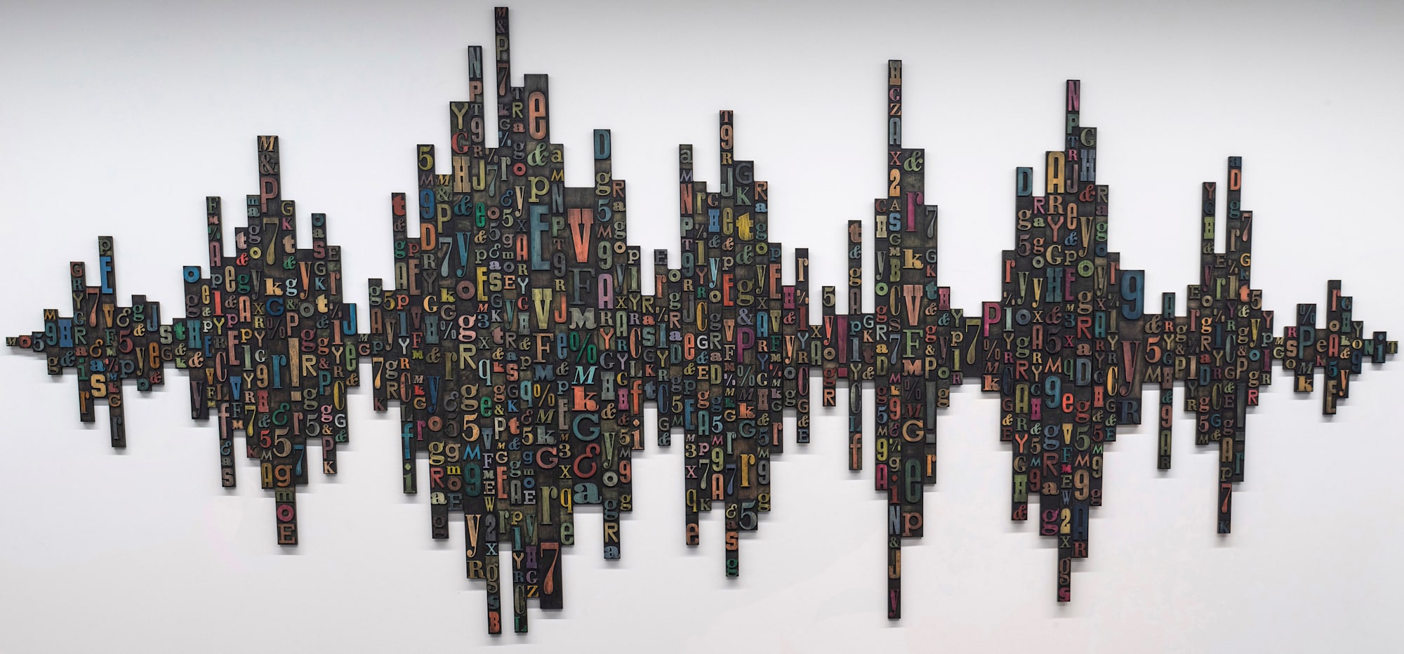 ''Thinking Made Visible'' and ''Speak On It'' are composed of a series of custom fabricated, CNC cut, block letters, maple/ash wood panels. The Designs are subdivided into a series of smaller sub-panels which will be joined together to create the overall composition. The color-stained wood letters represent movable type printing, a process leading to the democratization of knowledge. The two projects symbolize this immeasurable contribution to human history. The Asymmetric geometry of ''Thinking Made visual represents visual communication and takes it's form from a diagram of light entering an eye. ''Speak On It'' visually depicts audio waves composed of vertically stacked columns of wood which rise and fall crating a visual representation of voices.