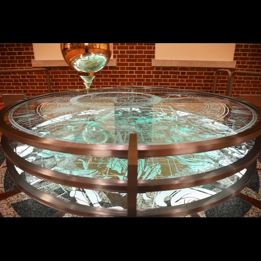 The Pendulum, ''Time Piece,'' in Kreger Hall is a dramatic focal point for the building and a new destination for Miami University of Ohio. The artwork is an interpretation of a scientific instrument that is a fully functioning Foucault pendulum with the artful addition of time-based metaphorical references.