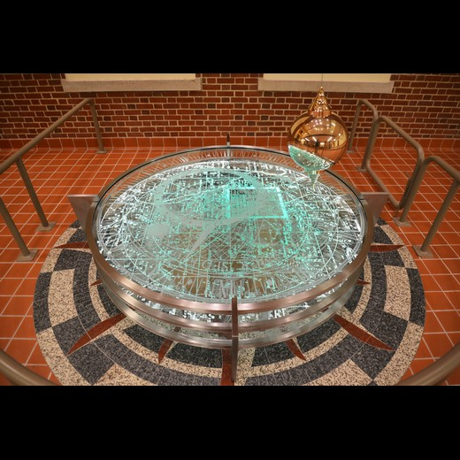 The Pendulum, ''Time Piece,'' in Kreger Hall is a dramatic focal point for the building and a new destination for Miami University of Ohio. The artwork is an interpretation of a scientific instrument that is a fully functioning Foucault pendulum with the artful addition of time-based metaphorical references.