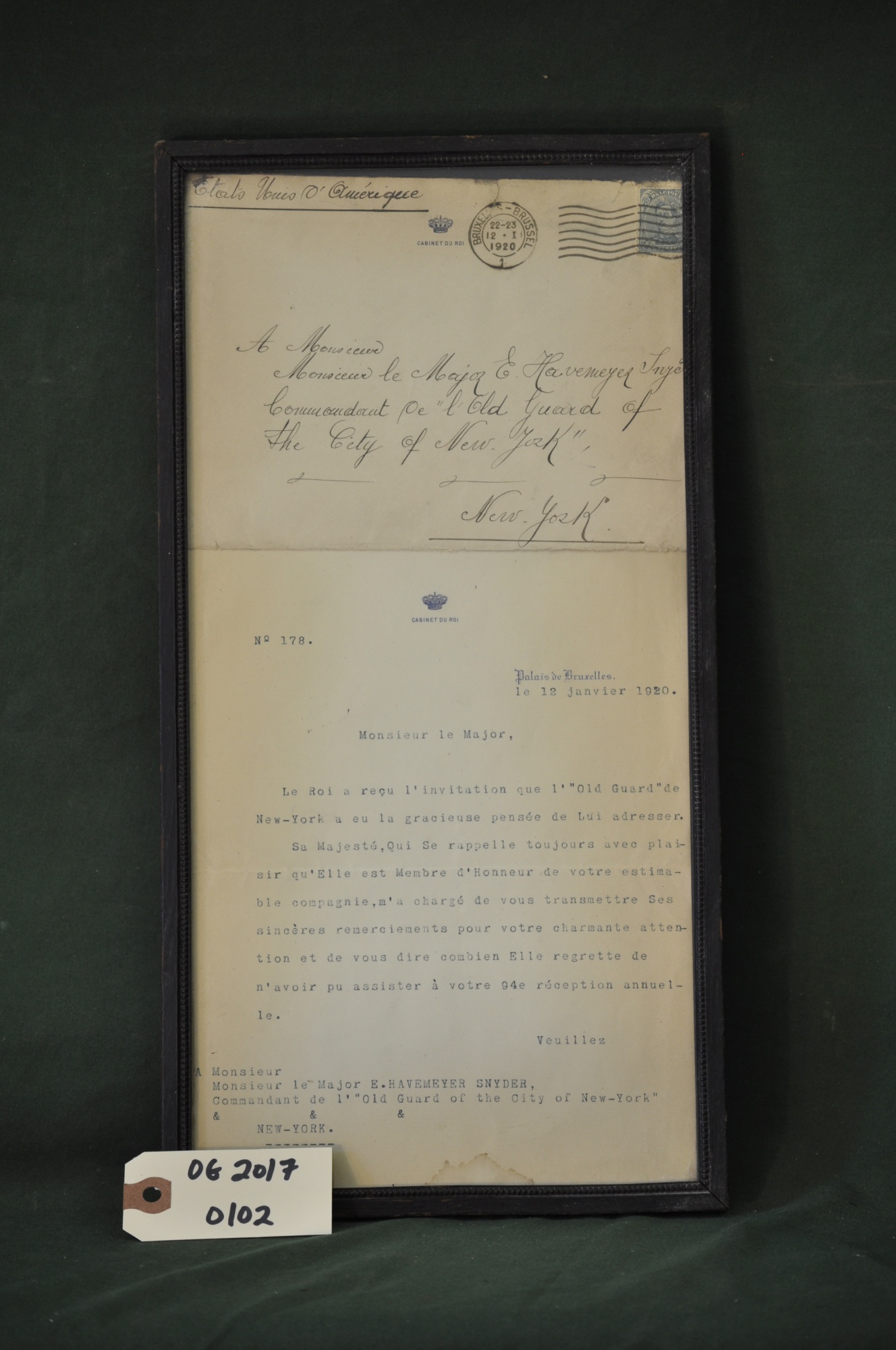Letter expresses the King's regrets that he cannot attend the 94th Annual Reception of the Old Guard.
