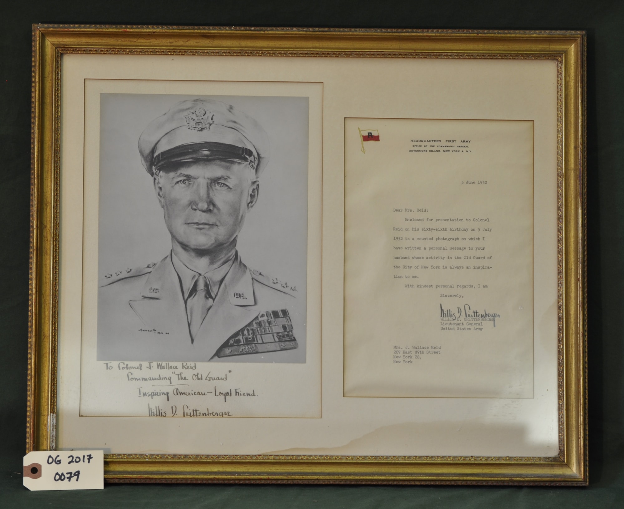 Gift to Colonel J. Wallace Reid (per inscription and letter).