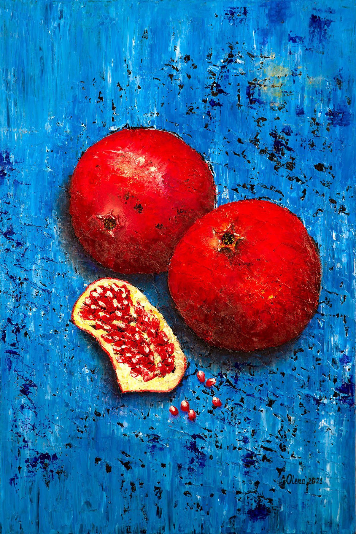 The Pomegranades series is an artistic series inspired by the double meaning of the word "pomegranate" in Ukrainian and in French– the fruit symbolizing prosperity, life force, and rebirth, and a weapon of war. This series invites us to choose the fruit over the bomb.