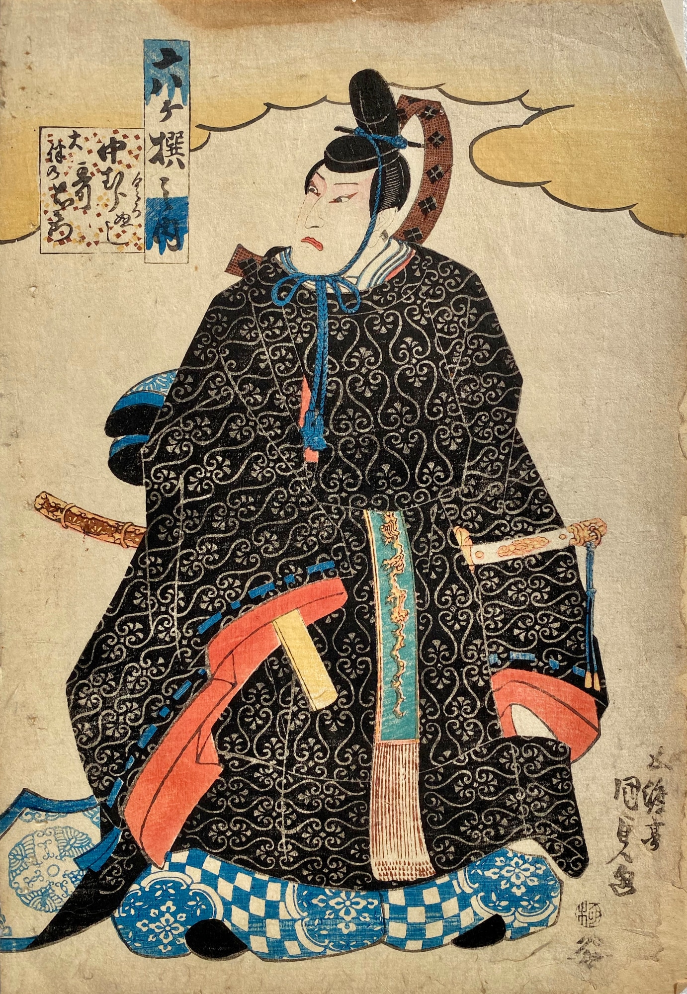 Man with Blue Robe Sitting, Hilt of Sword Sticks out Left