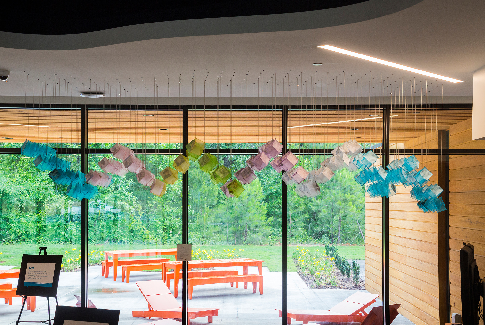 This textile/fiber installation of ephemeral organza cubes hold’s “memories” provided by members of the Ballentine community