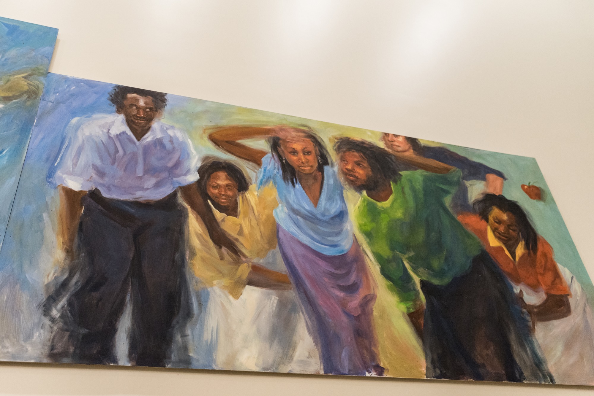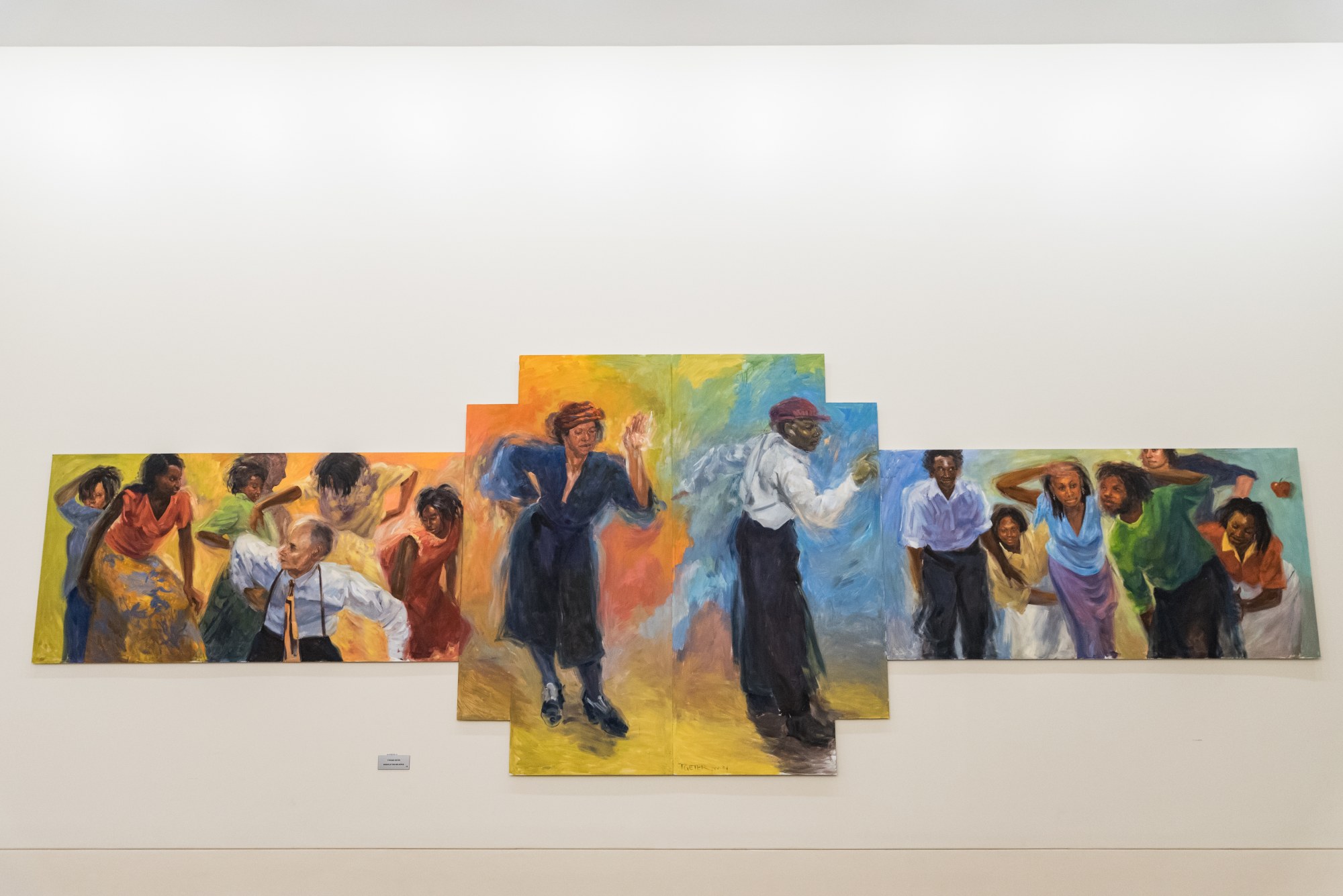 On Friday and Saturday nights in 1936 Columbia, South Carolina, young people gathered at The Big Apple Club (1000 Hampton Street) to socialize, listen to the “piccolo” blare the big band sounds and dance and dance and dance. From the Savoy Club in Harlem some brought the revolutionary partner dance known as Lindy Hop. From the plantations and farms of their own rural South others brought the Ring Shout which had crossed the Atlantic from Africa with the slave trade. The young people represented here fused African and American cultures with their personal interpretations of daily life into a dance formation, round like the rig shout. In the traditional African way, dancers took turns “shining the apple” in the center while being encouraged, even dared, to outdo one another in creativity and bravado!