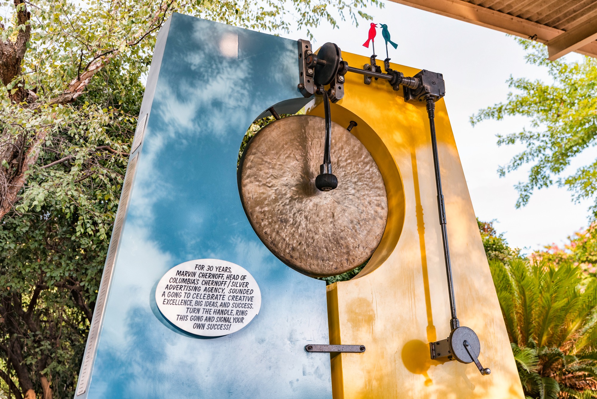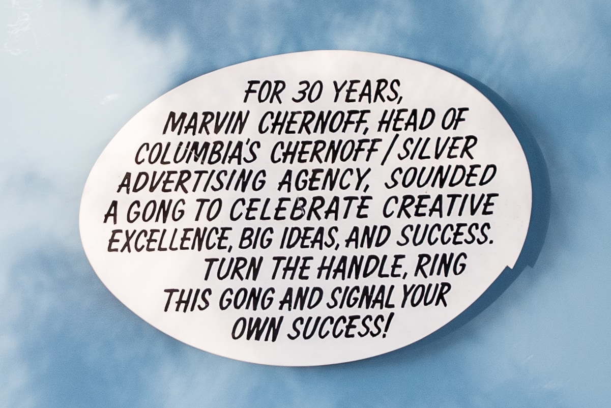 The “Gong” is a commemorative piece created to celebrate the late Marvin Chernoff, a legendary Public Relations Guru and the founder of Chernoff Newman. The sculpture consists of an 8ft by 8ft gong anchored in the ground, with a winding crank to strike the mallet to the gong. Gonging was the way Marvin symbolized a job well done, and as a way to create closure while moving forward to the next project. As former employee, longtime friend, and One Columbia board member Lee Ann Kornegay states, “When Marvin said ‘Gong!’ you knew it was time to take the idea and get started. It was his approval of either the right direction or a way to let you know the discussion was over. He was wonderful at recognizing when something fit and then taking action on it.”