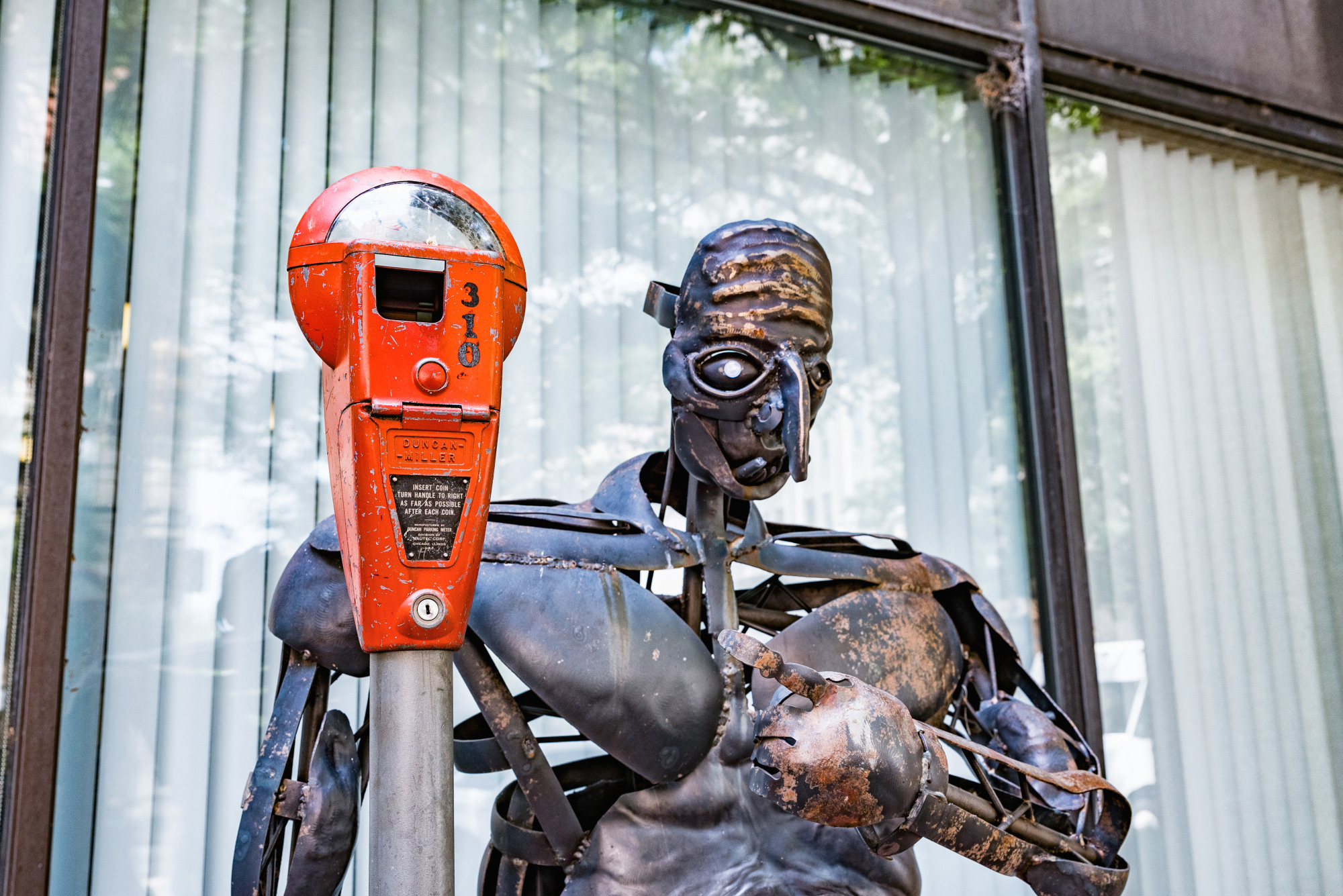 This piece, located in front of the City of Columbia Parking Payment Center, was created for “Change for Change” – a community art project transforming parking meters into art in order to raise money to benefit the Climate Protection Action Campaign.