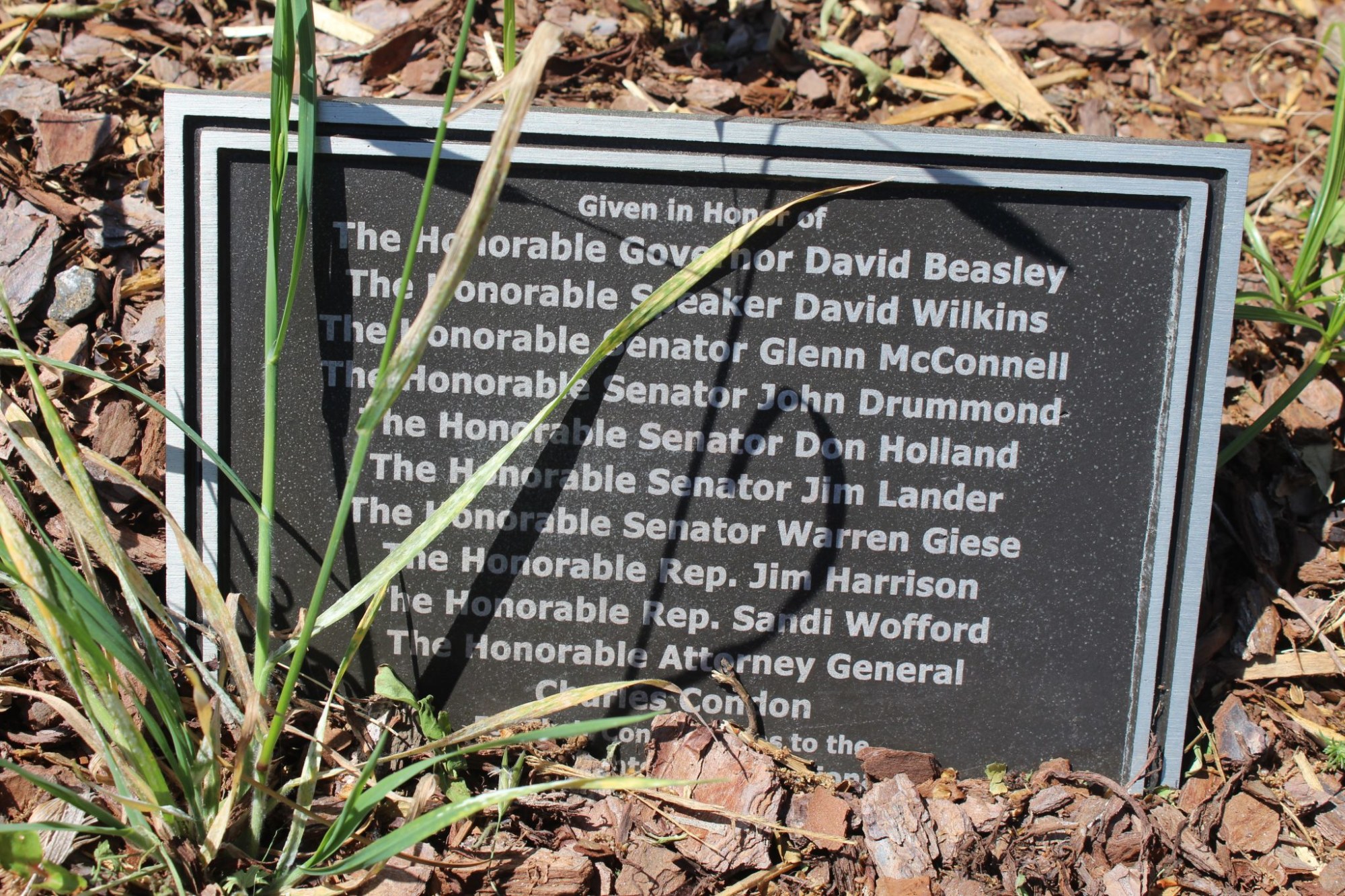 Given in honor of The honorable Governor David Beasley, the Honorable Speaker David Wilkins, the honorable Senators, Glenn McConnell, John Drummond, Don Holland, Jim Lander, Warren Giese, the honorable Representatives Jim Harrison and Sandi Wofford, and the Honorable Attorney General Charles Condon.