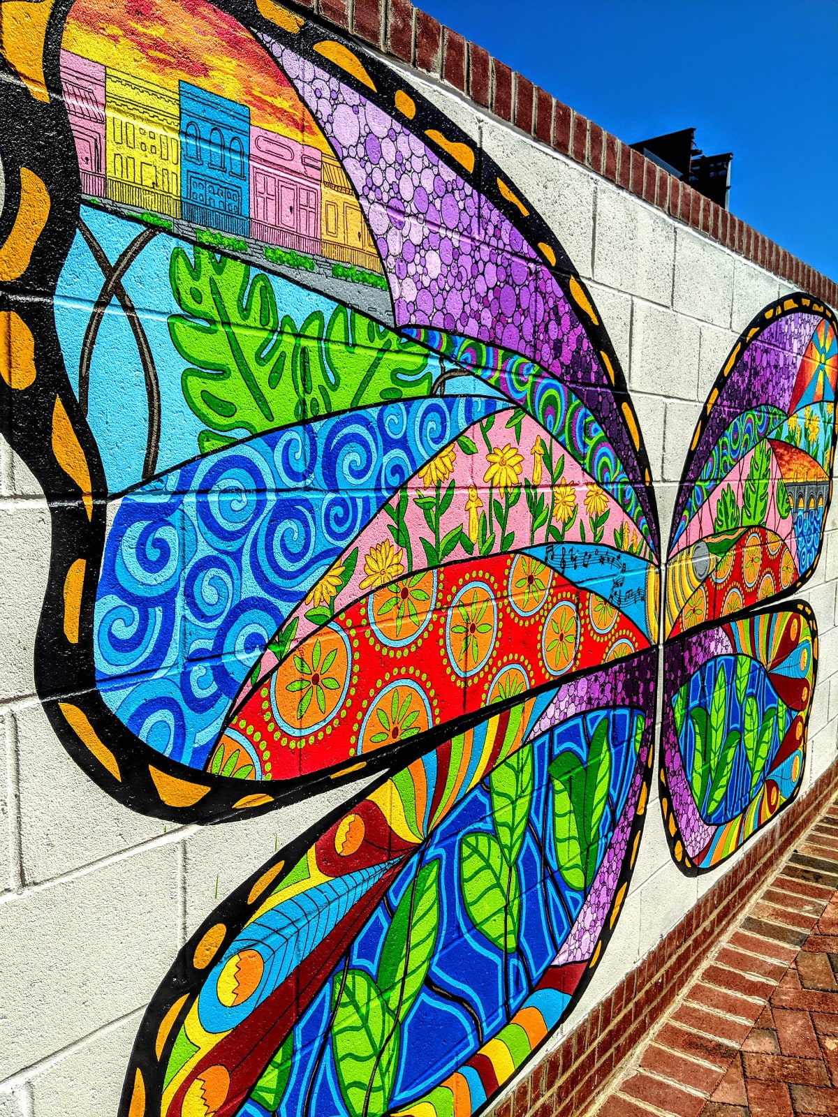 State of Mind was designed and created by local artist, Christine Lutfy. It is a butterfly mural located in the Interactive Art Park in West Columbia so anyone can walk up to it & pose in front of it. West Columbia wanted to incorporate a mural that was interactive to bring the community together and get people outside. This mural is a fun and whimsical way to represent the City of West Columbia & the State of South Carolina.
