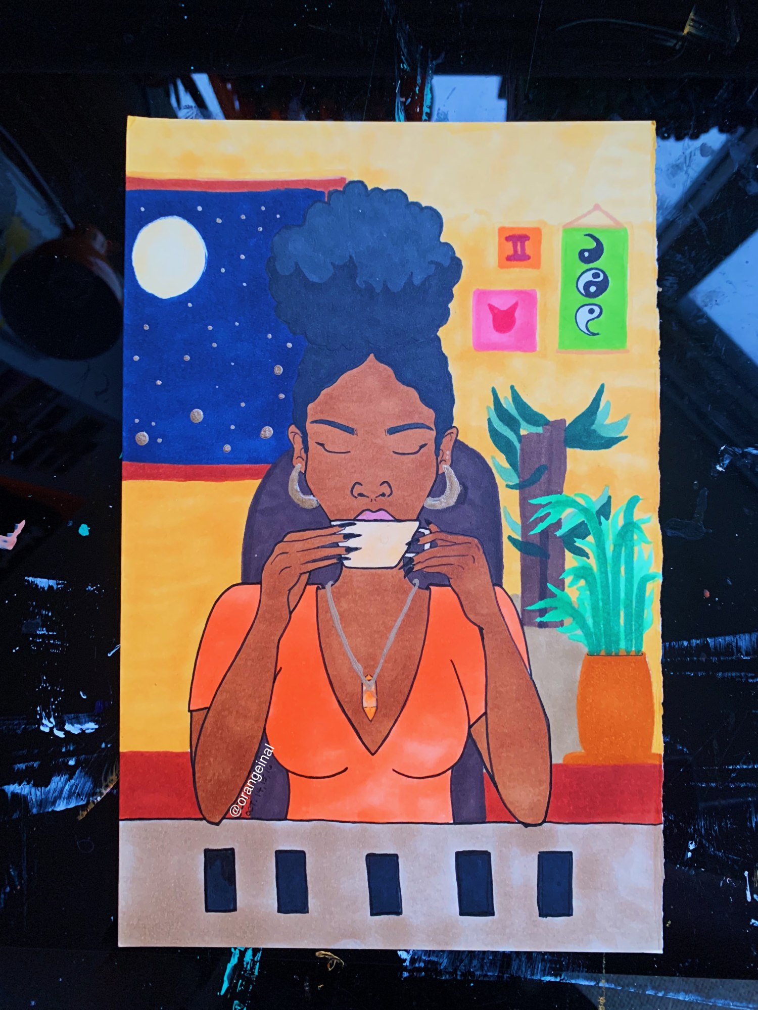 Then, one day, I found myself drawn to it again. As I gazed upon the sketch, a vision for the background suddenly materialized in my mind. It was as if the piece itself was calling out for something more, urging me to bring it to life in a new way.