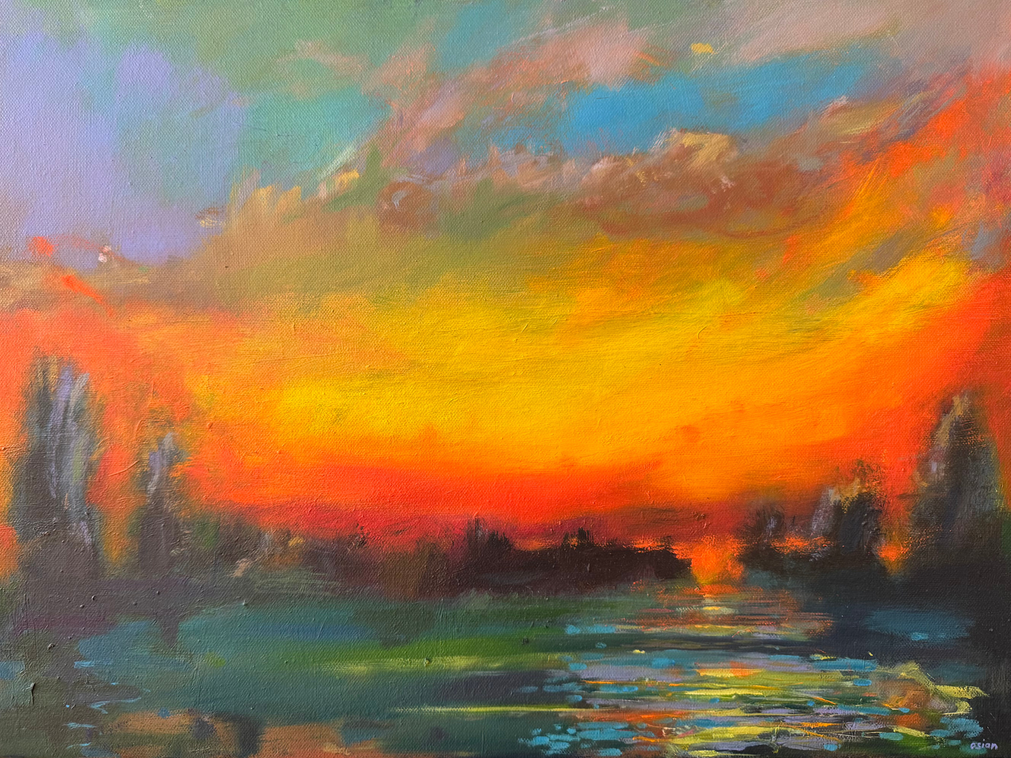 The dark slips away, and the sky stirs alive. Light stretches, bold and bright, shaking the world awake.