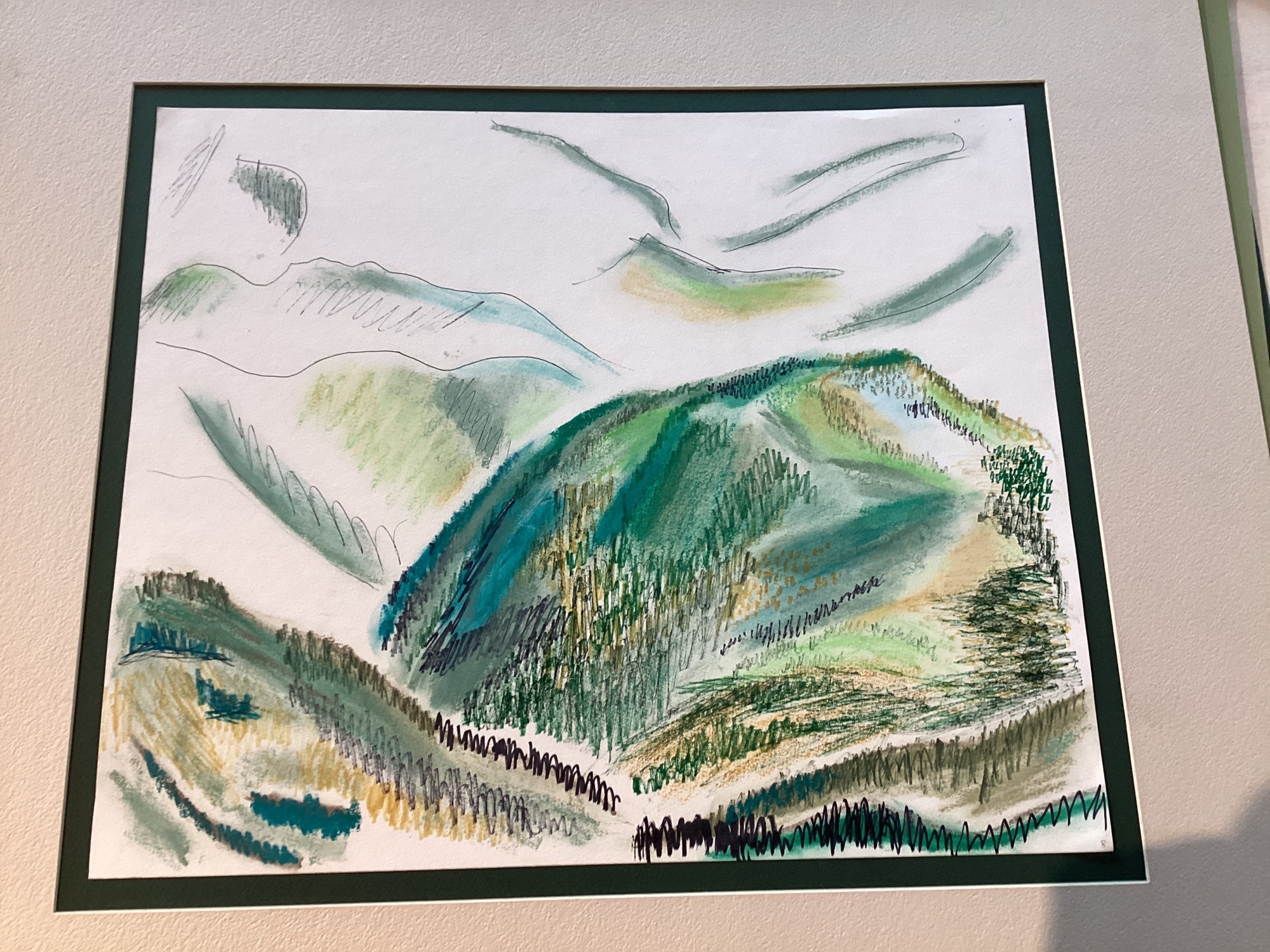 Green hills and mountains. More white space than other mountains.