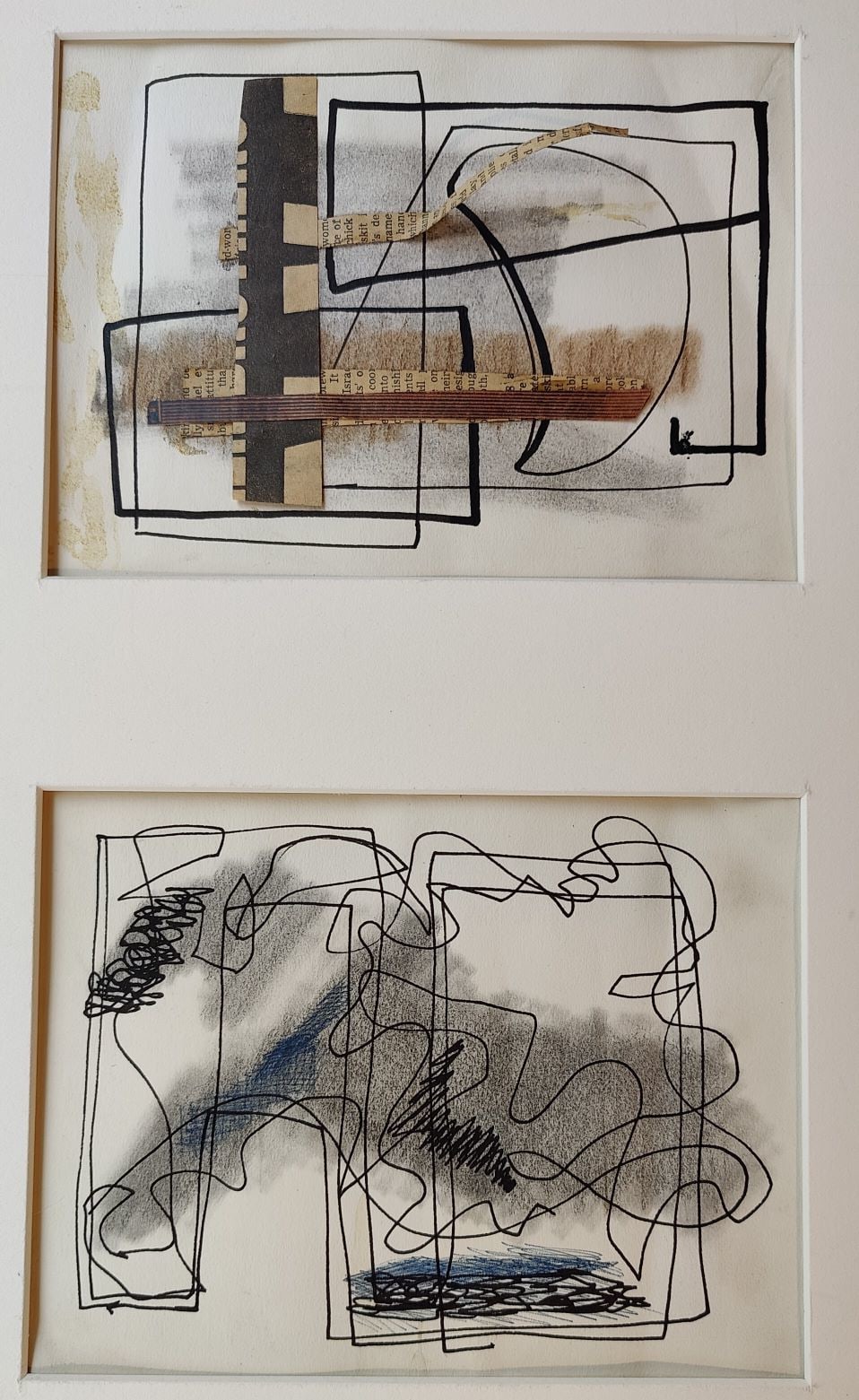 Four sketches from a sketch book that have been matted together for display. Each is identified with an accession number.